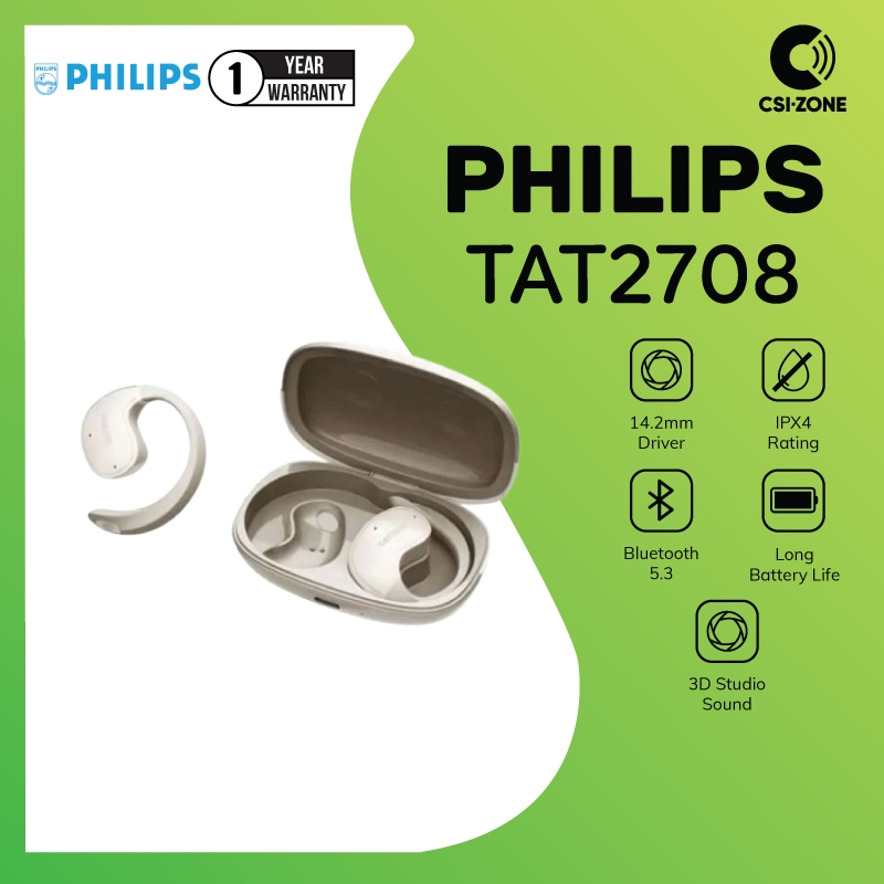 Philips TAT2708 / TAT 2708 14.2mm Driver Bluetooth Open Ear True Wireless TWS