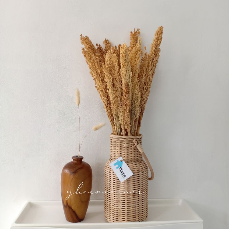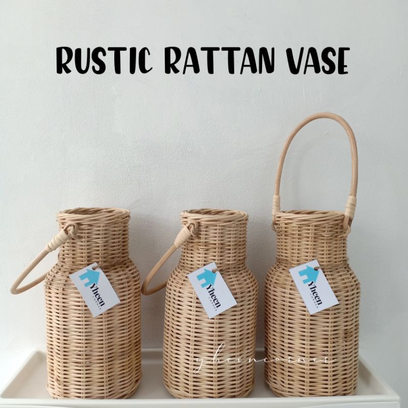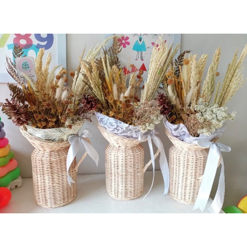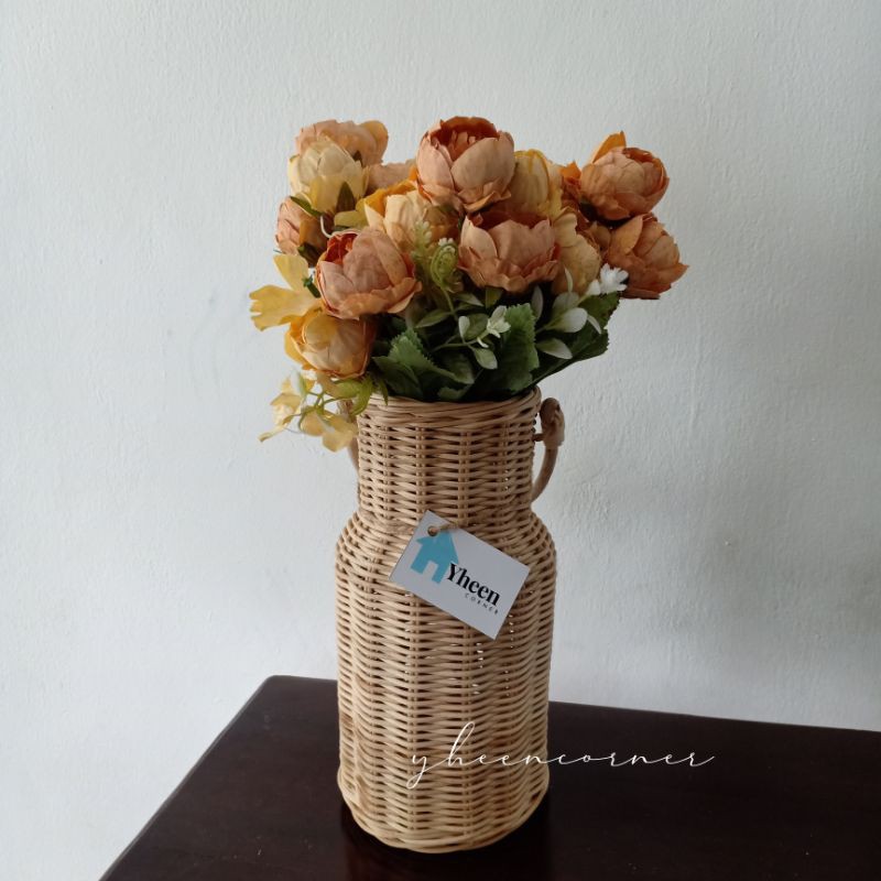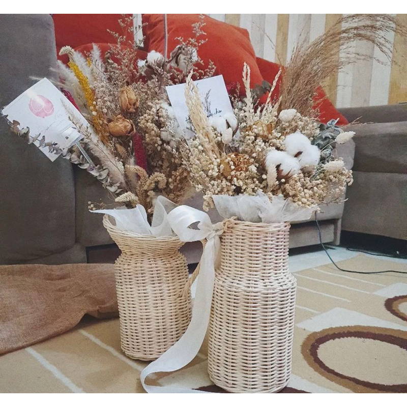 Rustic Rattan Vase / Vas Rotan Kaleng Susu