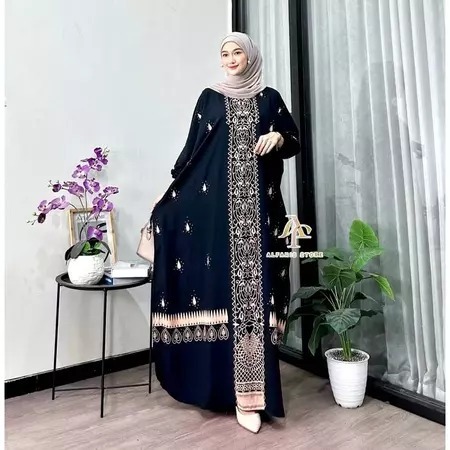 CUNDA KAFTAN-ABAYA GAMIS KAFTAN WANITA MOTIF MECCA BUSUI FRENDLY RAYON PREMIUM ADEM TEBAL NYAMAN