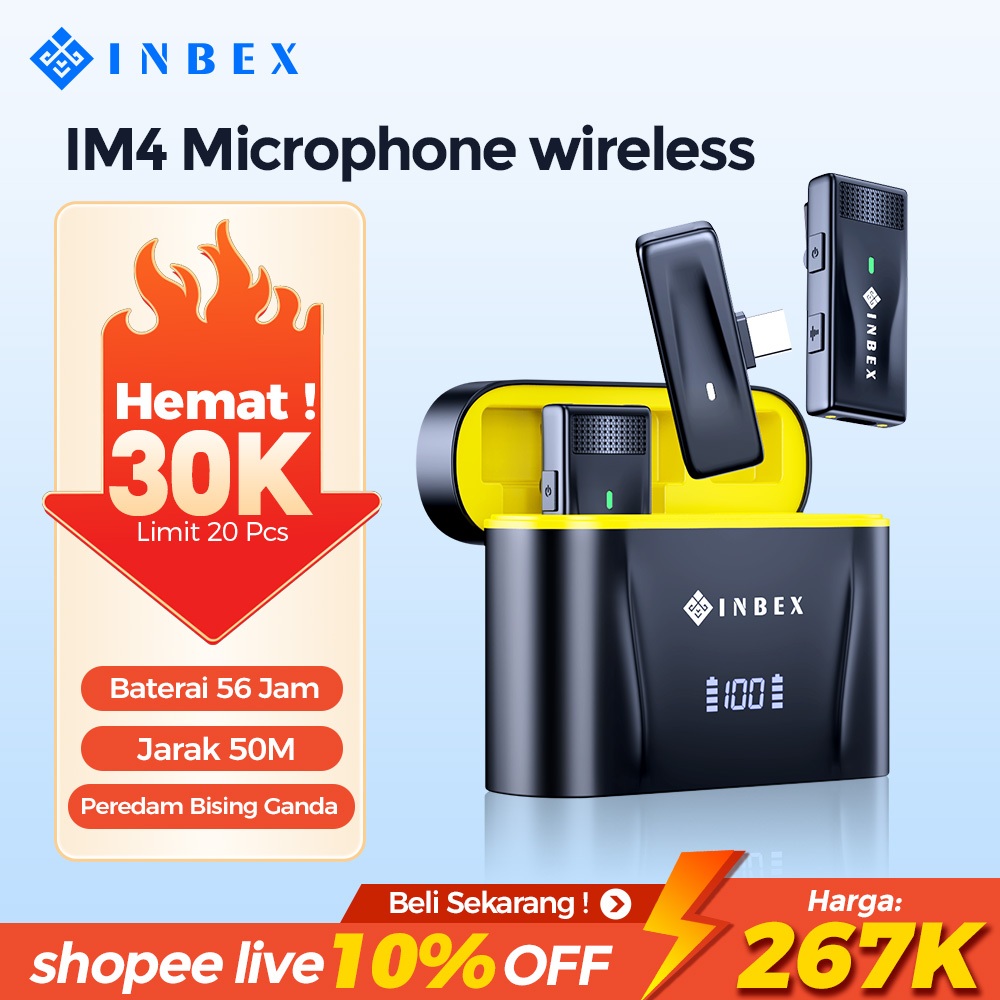 INBEX IM4 Microphone Wireless Live stream/Video Mic Clip Dual Lavalier Bluetooth&Charging Case