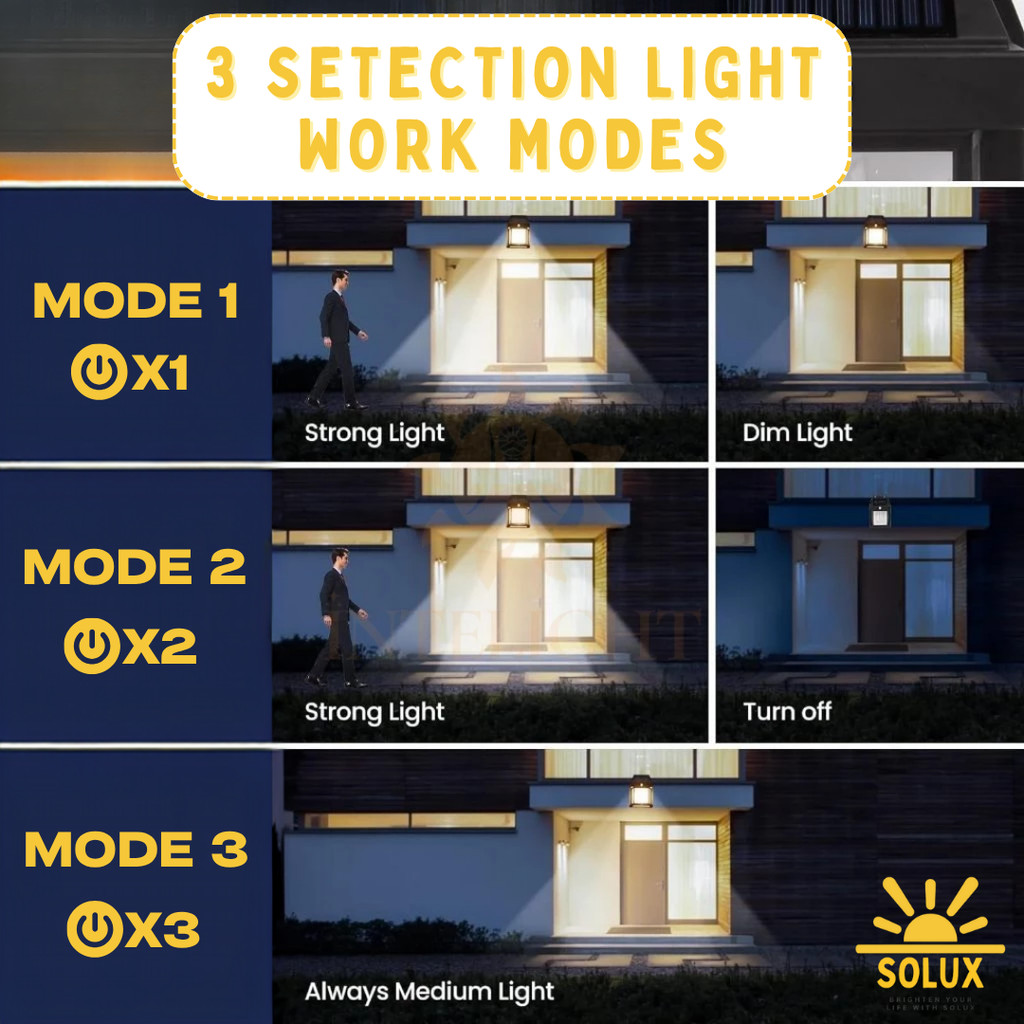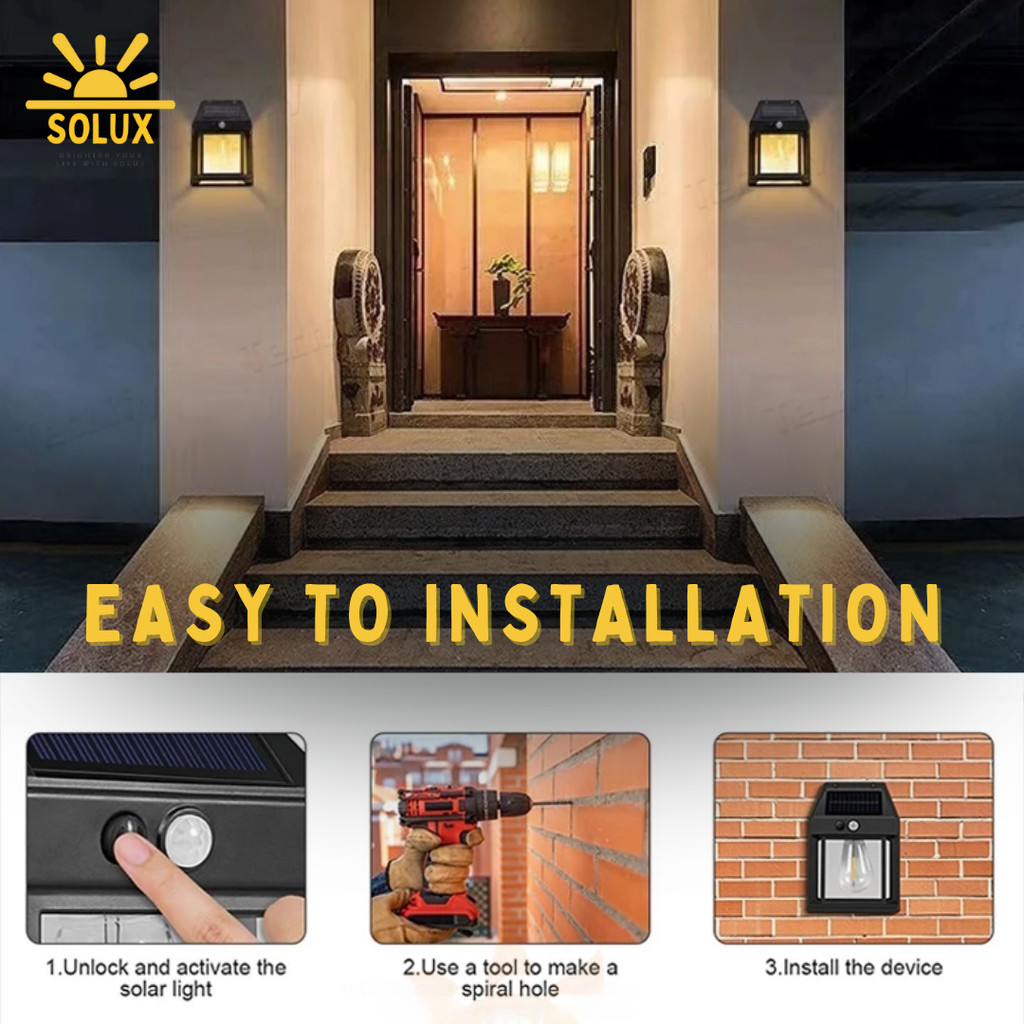 [Solux]Lampu Dinding Solar Tenaga Surya Sensor LED Emergency Outdoor Wall Lamp Lampu Hias Tahan Air