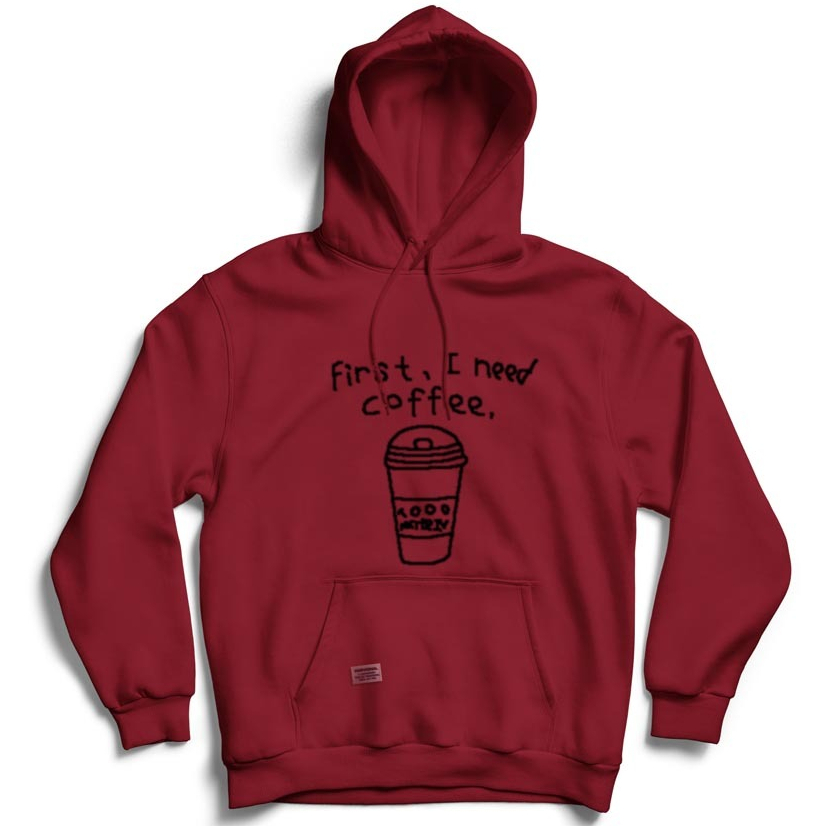 SWEATER HOODIE JEMPER FIRST I NEED COFFE UNISEX matt COTTON fleece Premium TERMURAH TERLARIS