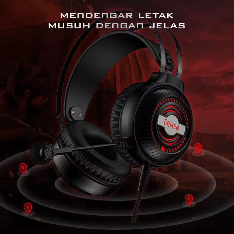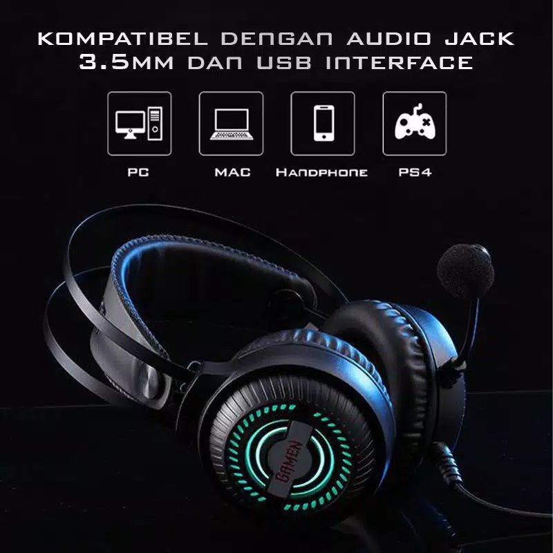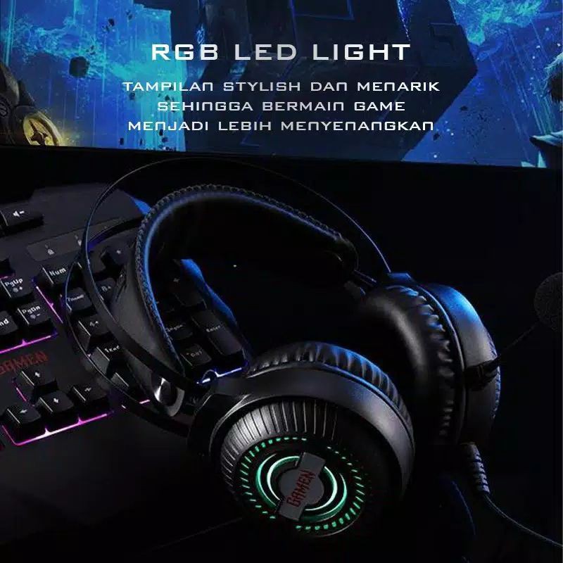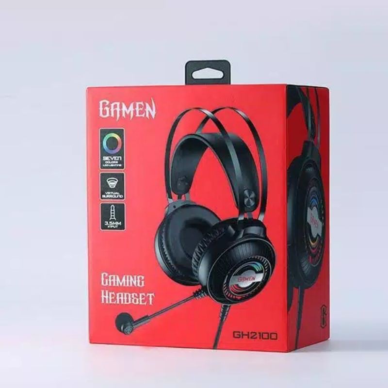 BATAM GROSIR (KCR) GAMEN Headset Gaming GH2100 Headphone RGB LED Light Wire Audio Jack 3,5mm Garansi Original