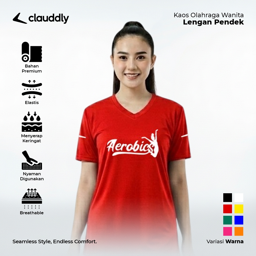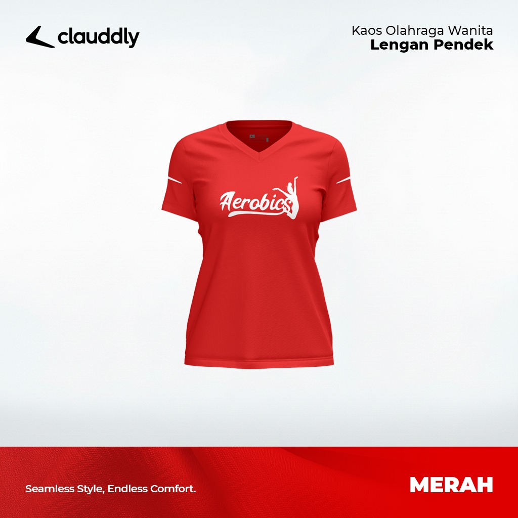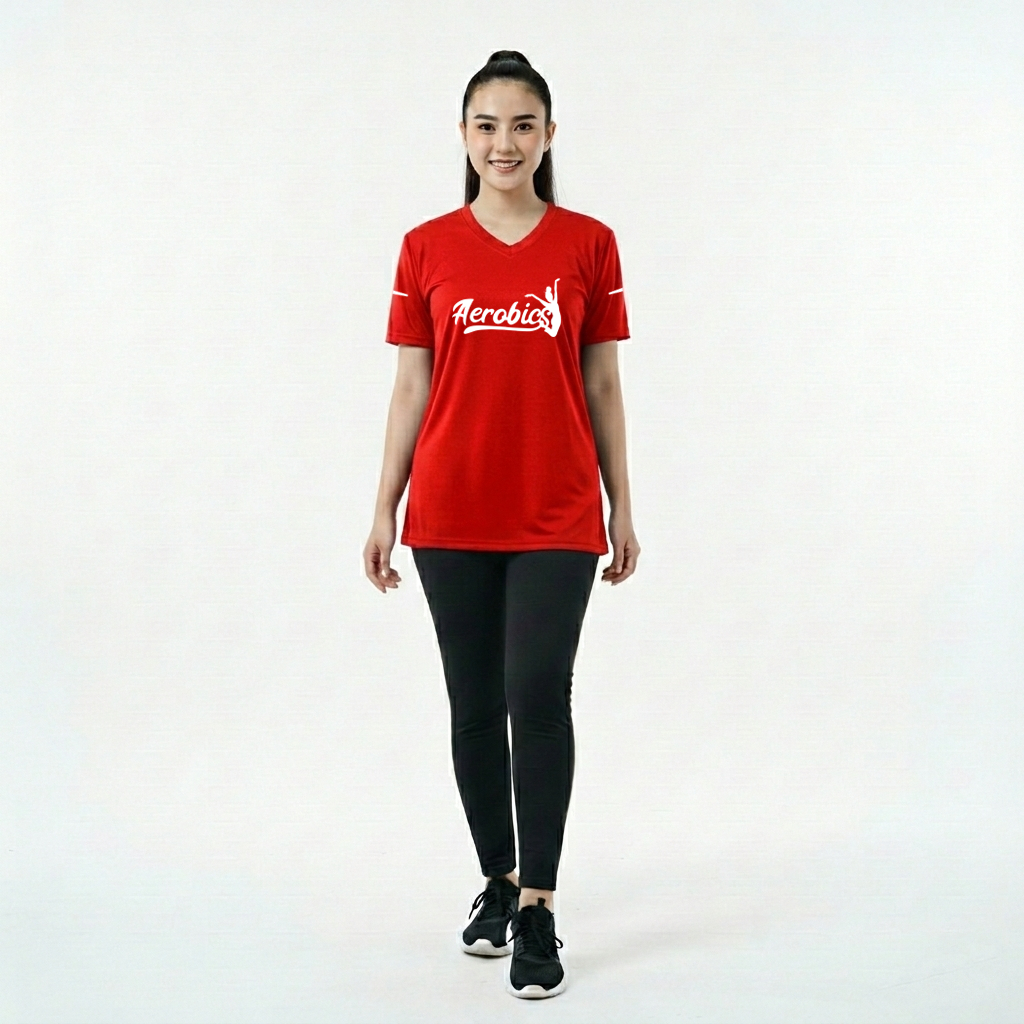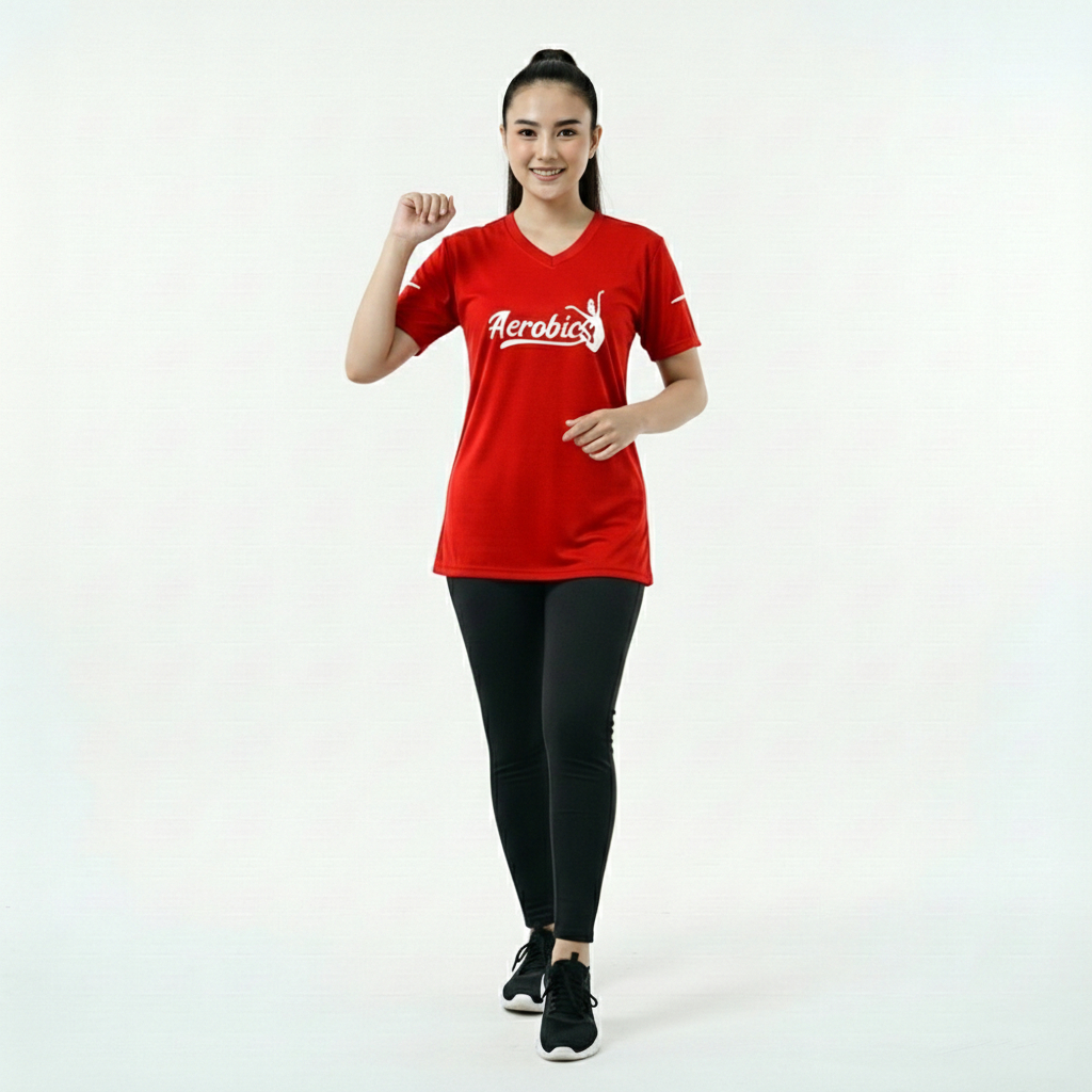 Kaos Olahraga Wanita Warna Merah Pendek Kaos Aerobics Running Senam Fitness Lari Big Size Jumbo