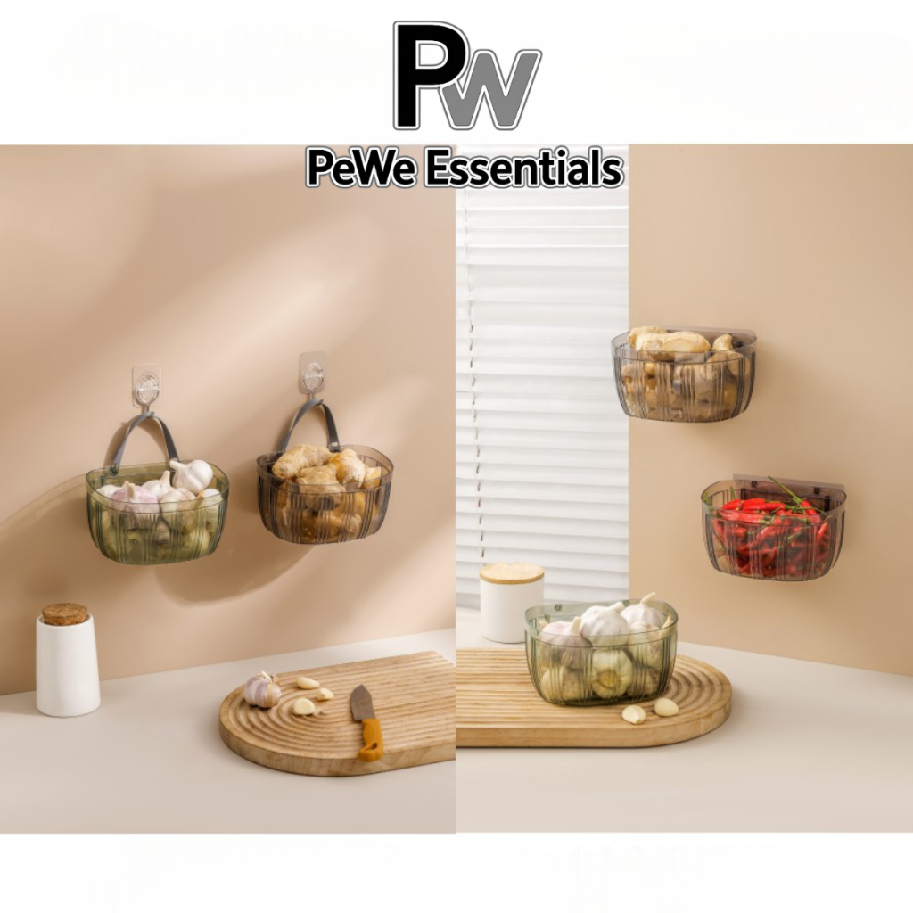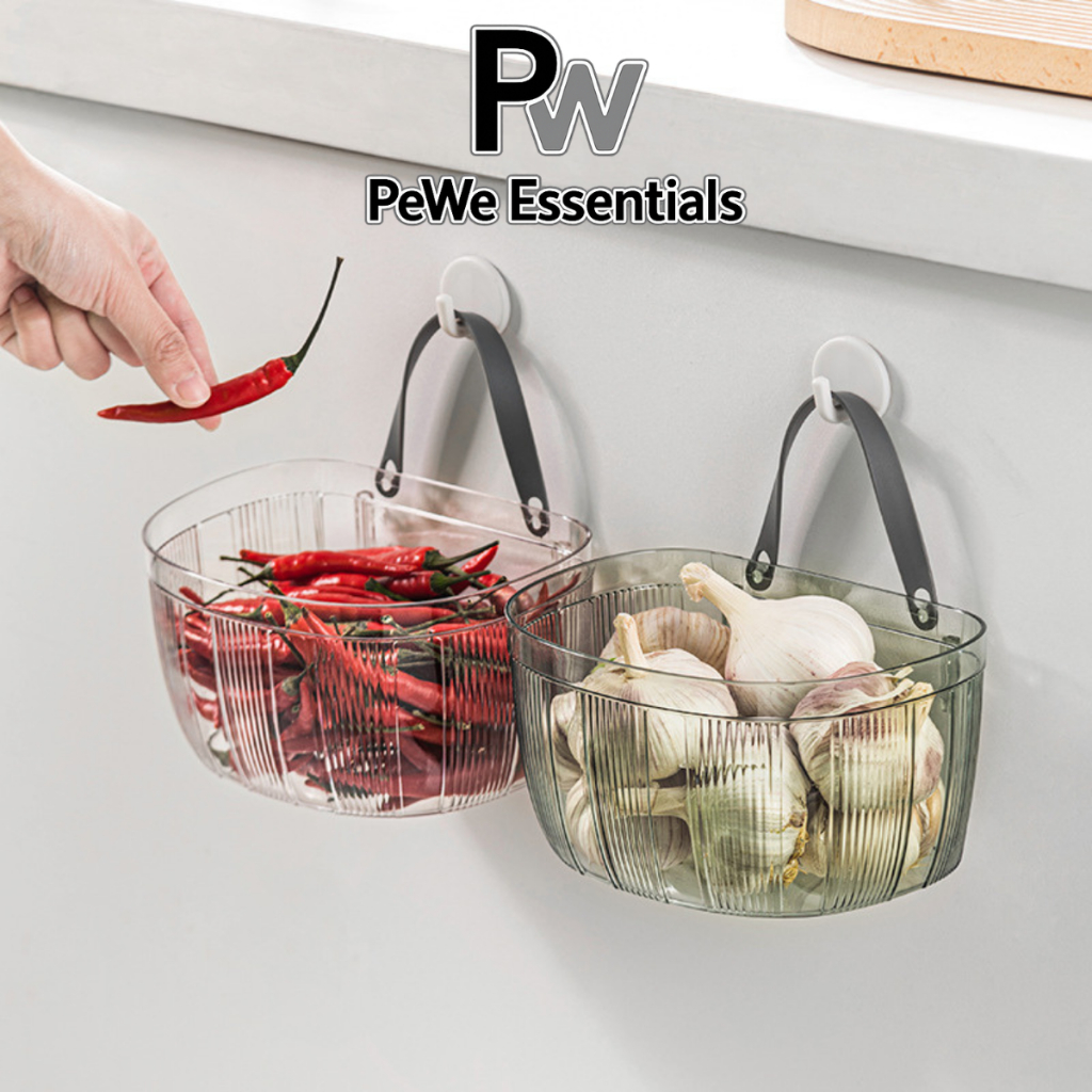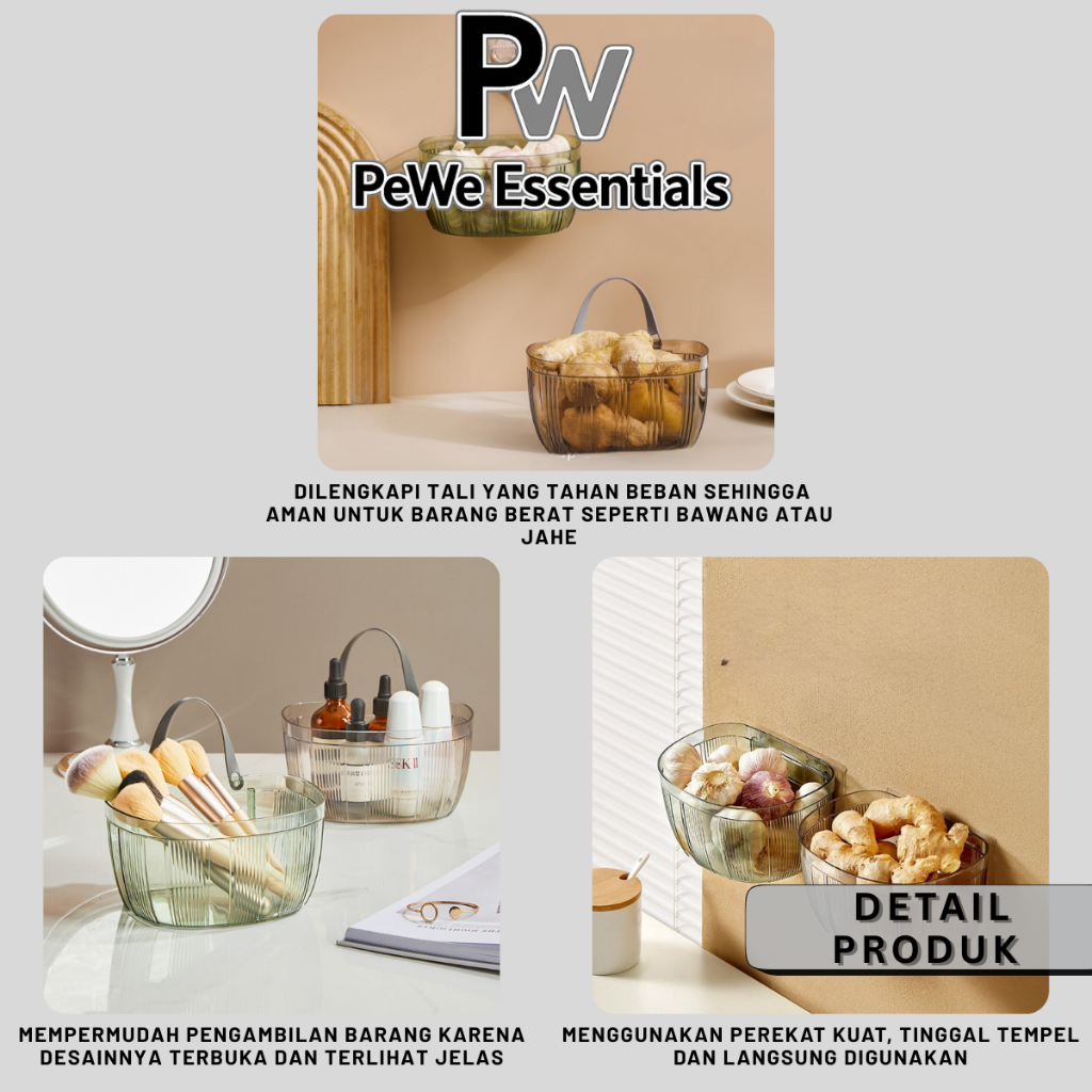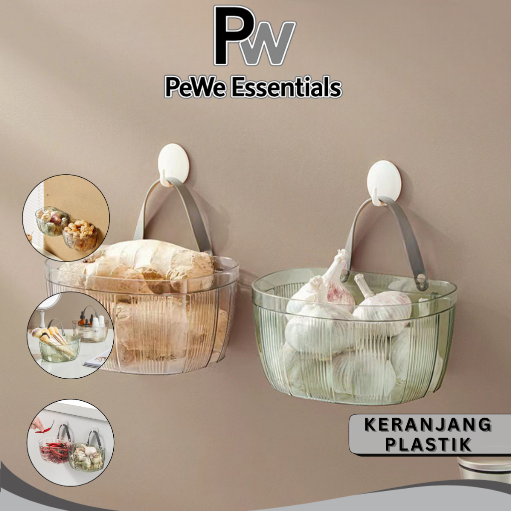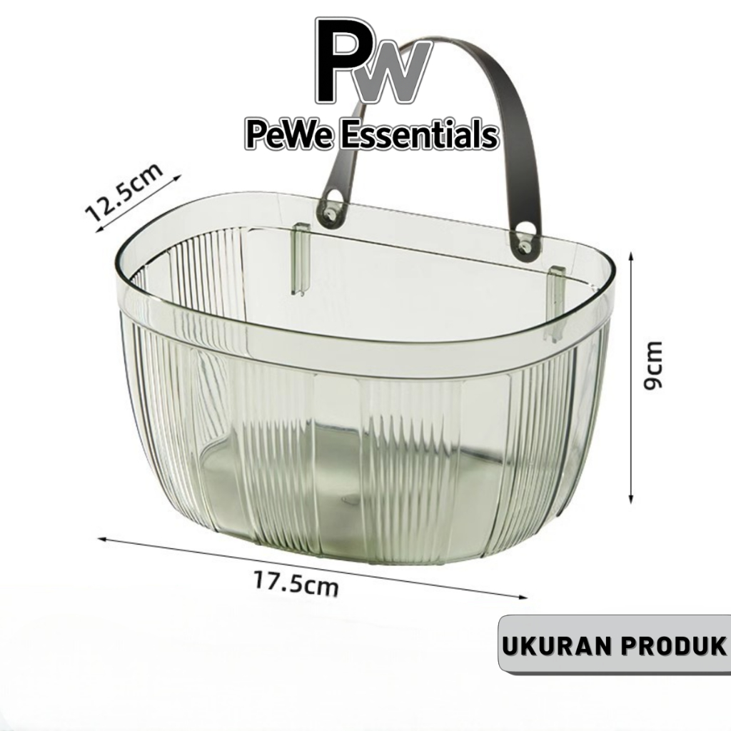 PW - Keranjang Plastik Multifungsi Organizer Skincare Mainan Dapur Pegangan Tali Transparan Estetik