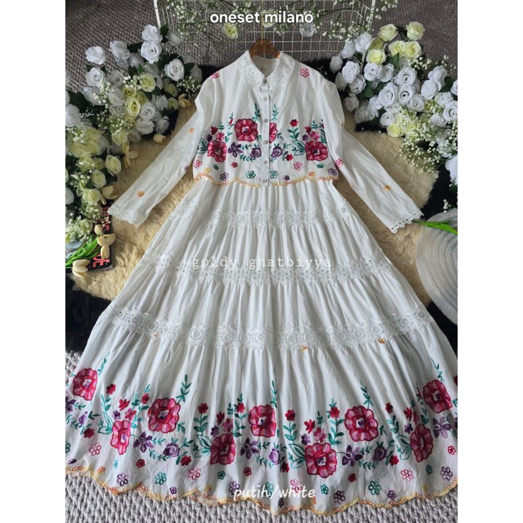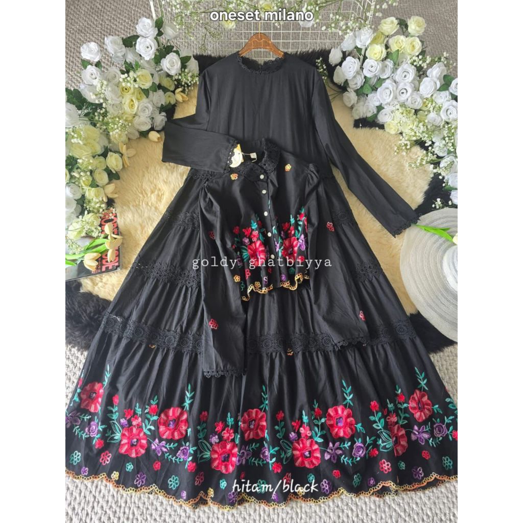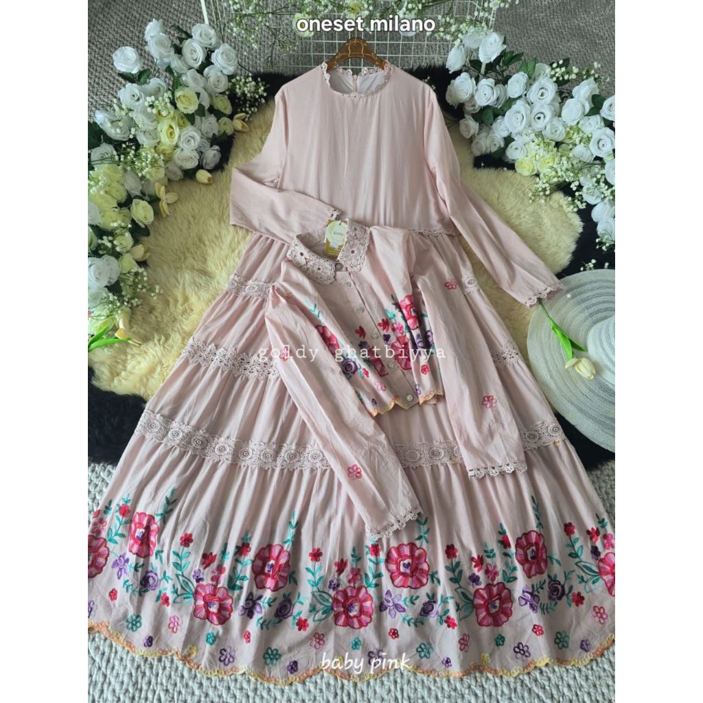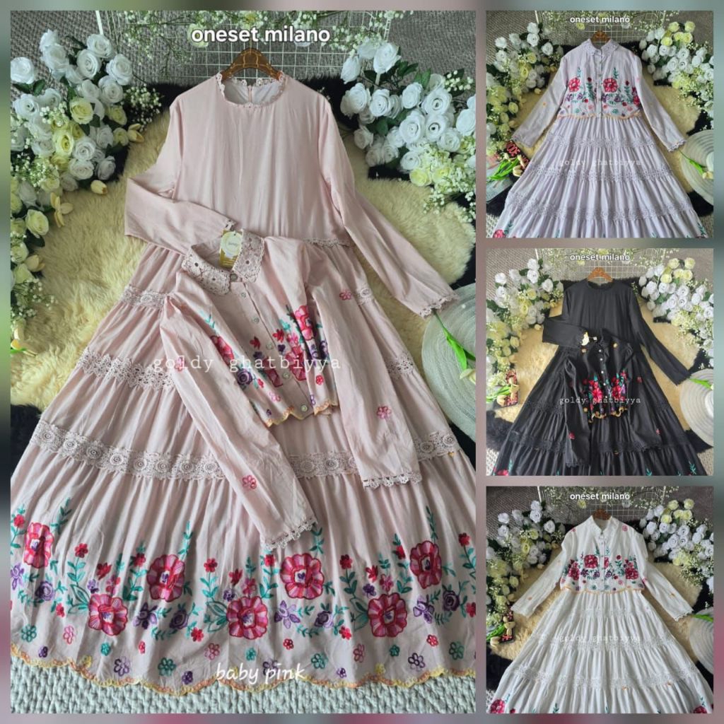 MILANO ~NEW LAUNCH! GhatbiyyaGoldy OneSet Katun Outer Bordir Premium by GoldyGhatbiyya Fashion Muslim Mewah & Kekinian Gamis Lebaran 2026