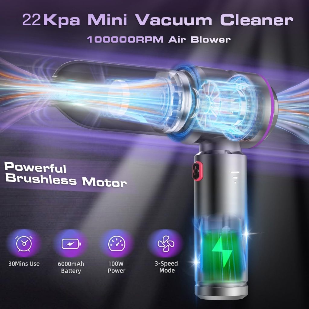 Car Vacuum Cleaner 22000PA Long Duration Compressed High Power Portable Handheld Wireless Brushless Motor Cleaning Maine Powerful Air Duster for car and Home