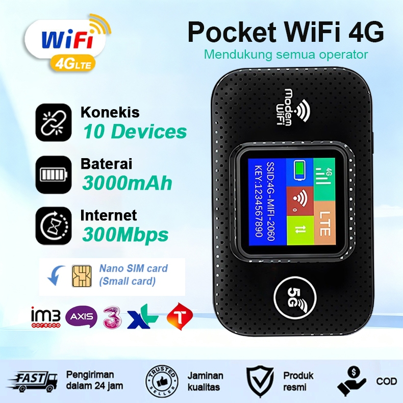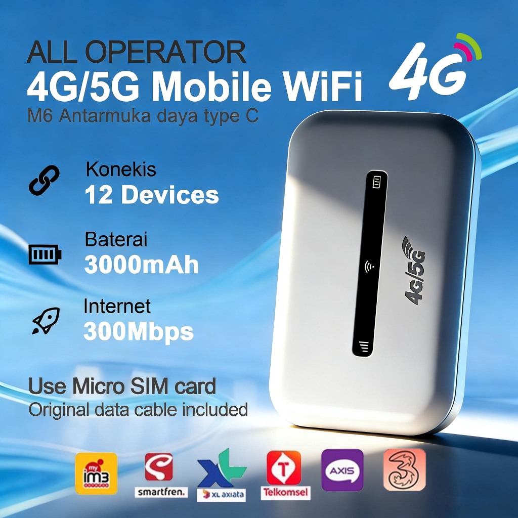 Modem Wifi 5G All Operator Mudah Dibawa 300Mbps Pocket WiFi with SIM card 3000mAh Portable Wifi