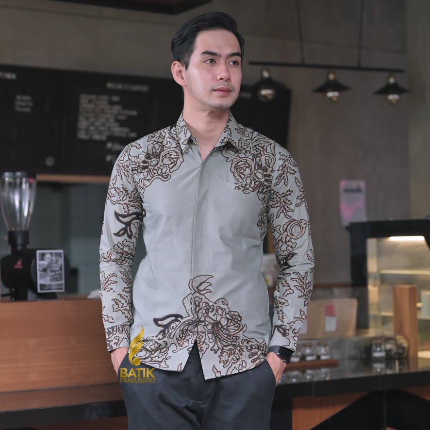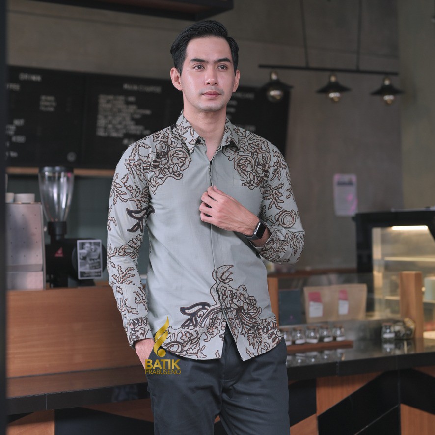 WIRAGUNA KEMEJA BATIK PRIA SLIMFIT LENGAN PANJANG ORIGINAL PRABUSENO KATUN PRINTING HEM BAJU SERAGAM KERJA KANTOR MODERN PREMIUM ELEGAN COWOK MUDA DEWASA