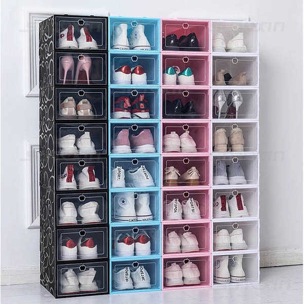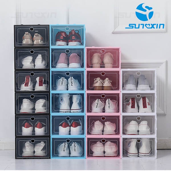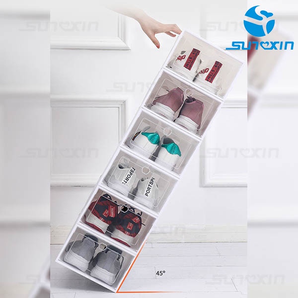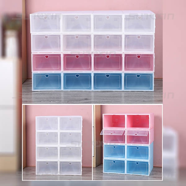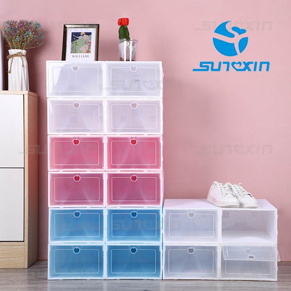 Sunxin - 1 Set Isi (3Pcs) Kotak Sepatu/Sandal Transparan/Shoes Box/Rak Sepatu