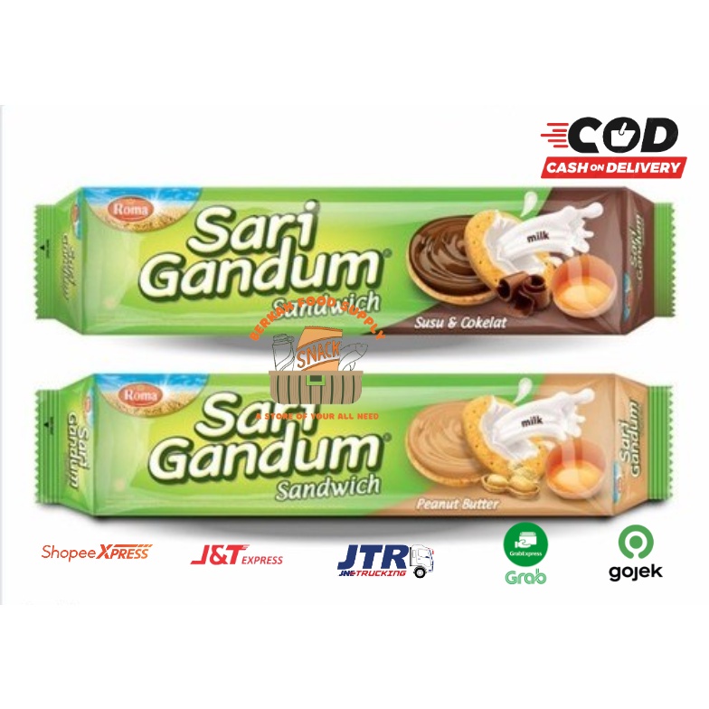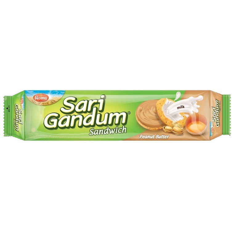 ( BERKAH ) Roma Biskuit SARI GANDUM Peanut Butter Susu Coklat Sandwich 115gr Snack Cemilan Anak