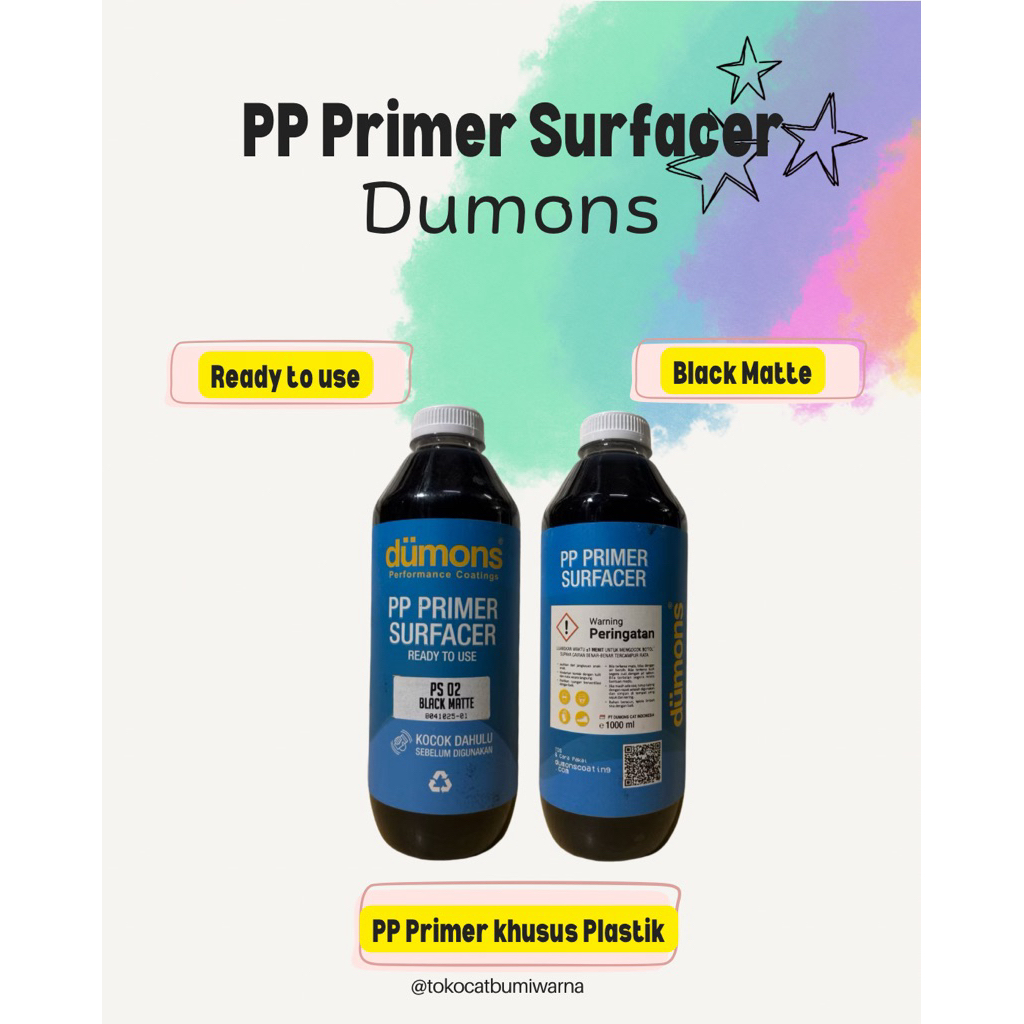 Dumons PP Primer Surfacer PS 02 Black Matte 1000ml | Cat Dasar Plastik Body Motor