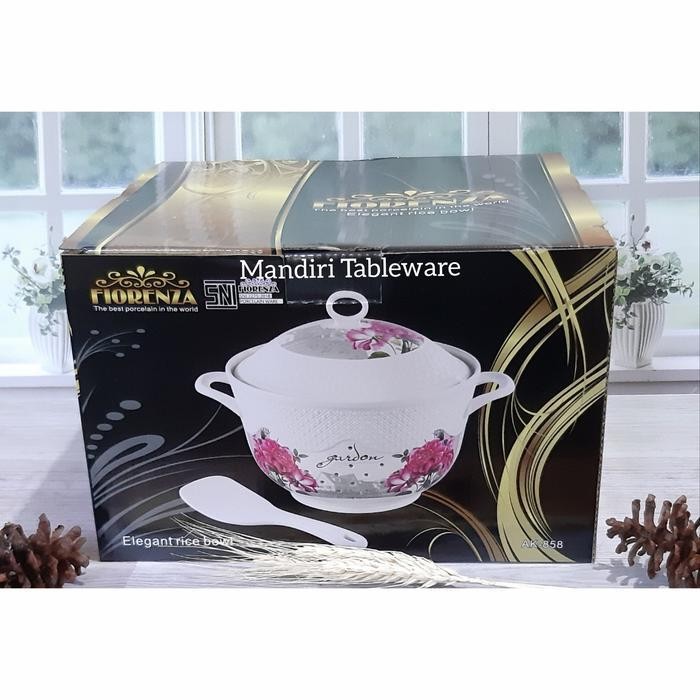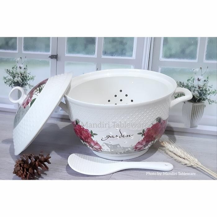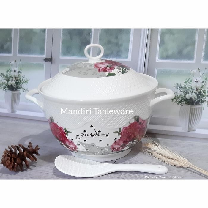 (Termurah) Tempat Nasi Keramik Plus Tutup | Ukuran 23 Cm | Sangku Nasi | Motif Garden | Premium Quality Bestseller