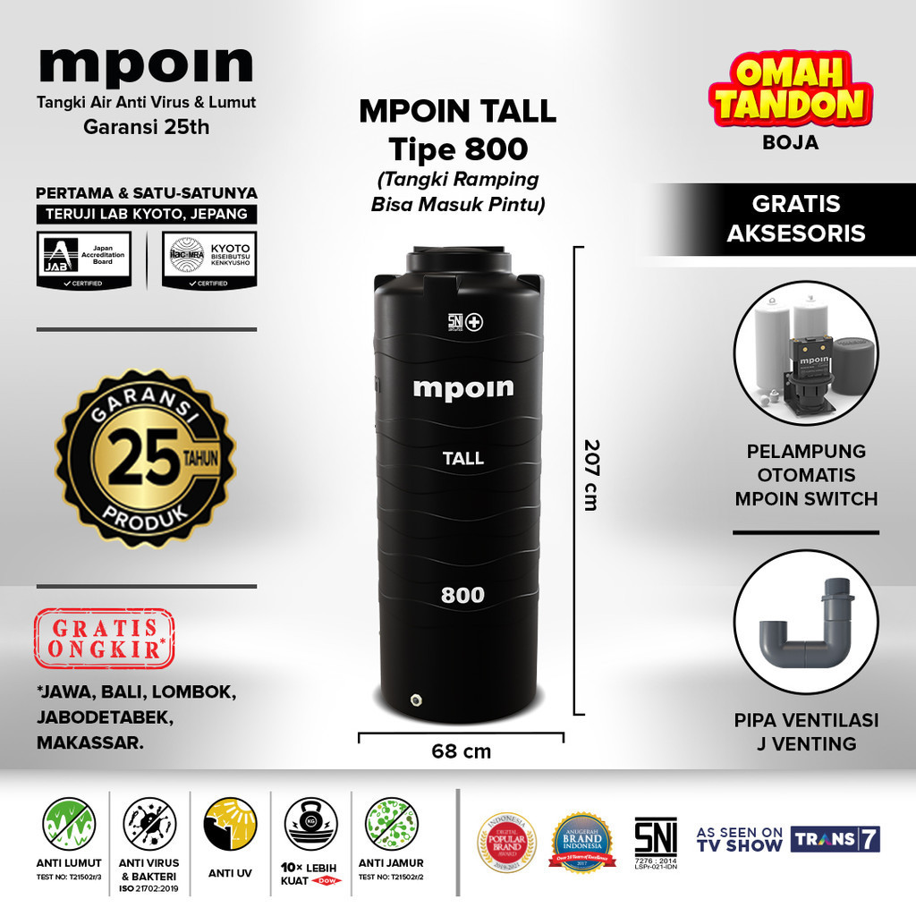MPOIN Tangki Tandon Toren Air Tall 800 Anti Bakteri Anti Lumut Garansi 25 Tahun