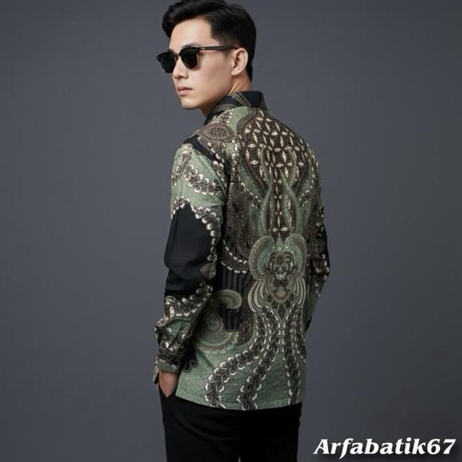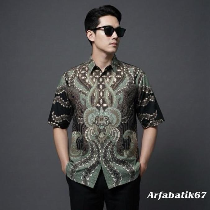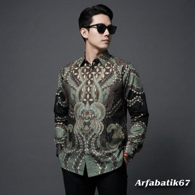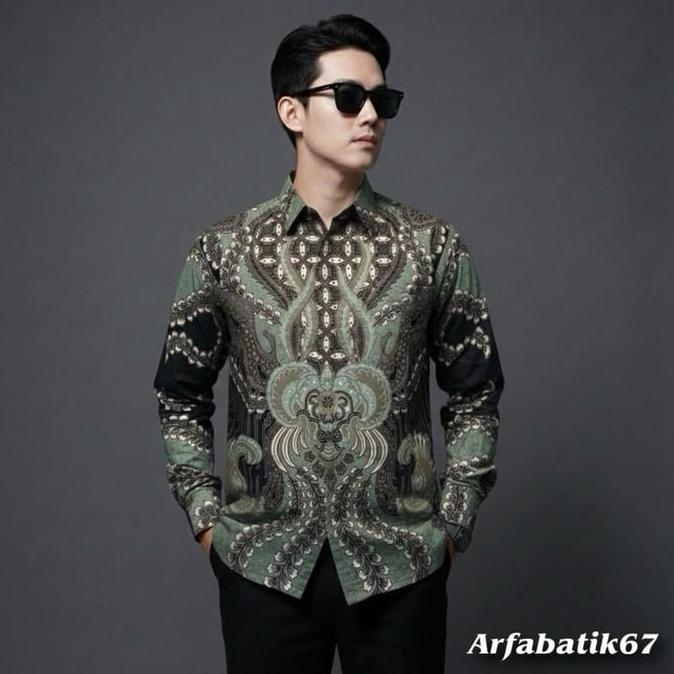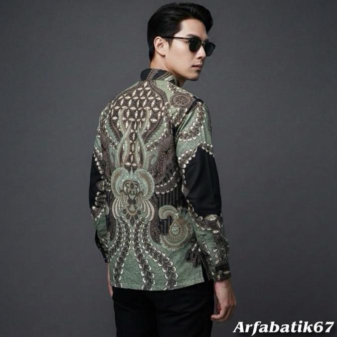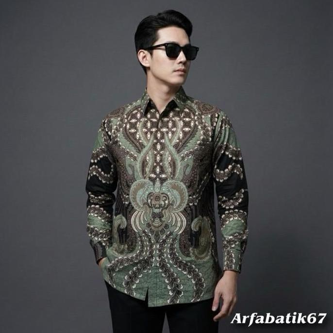 ABIMANYU SAGE GREEN Baju batik printing pria lapis furing katun premium lengan panjang dan pendek ready seragaman by arfabatik67
