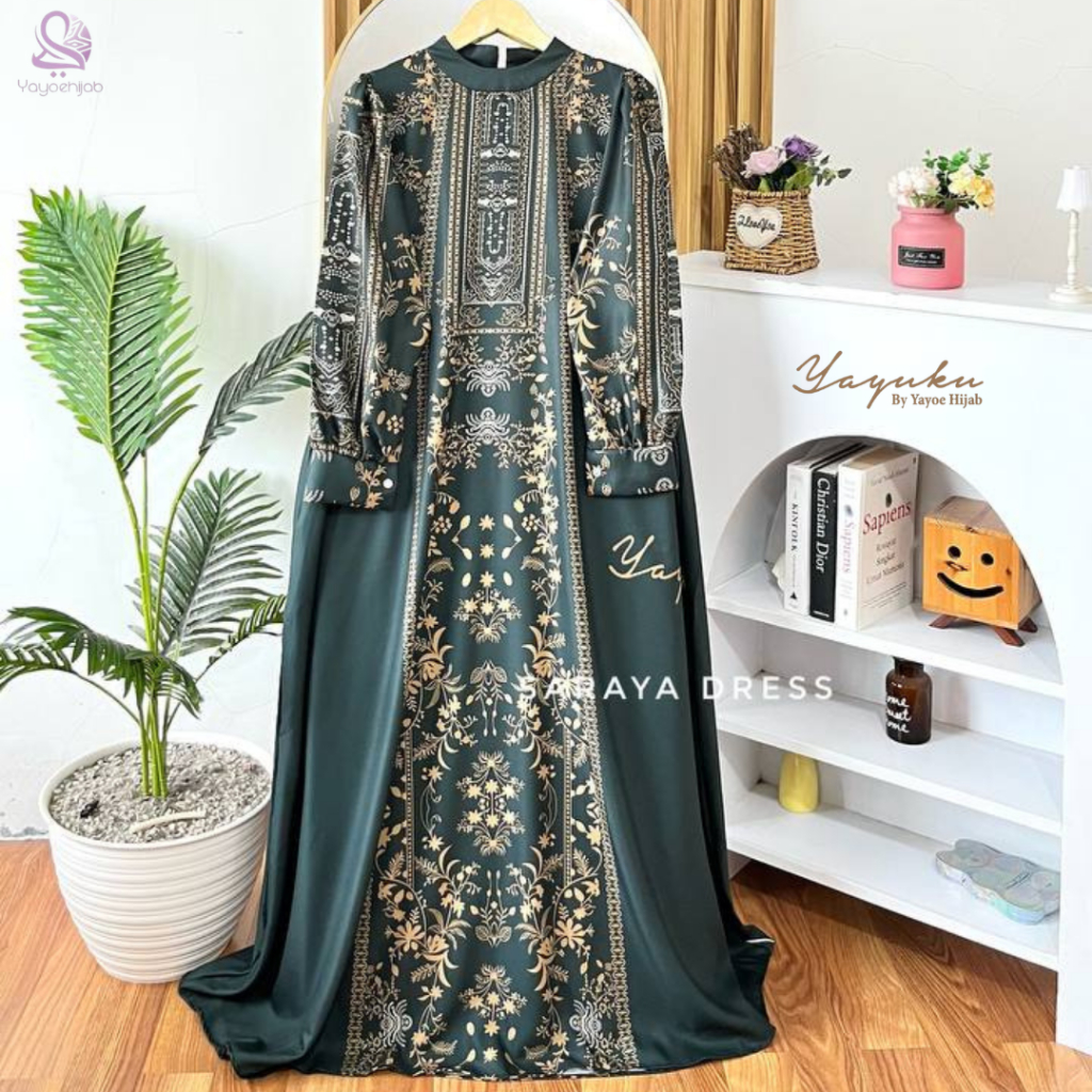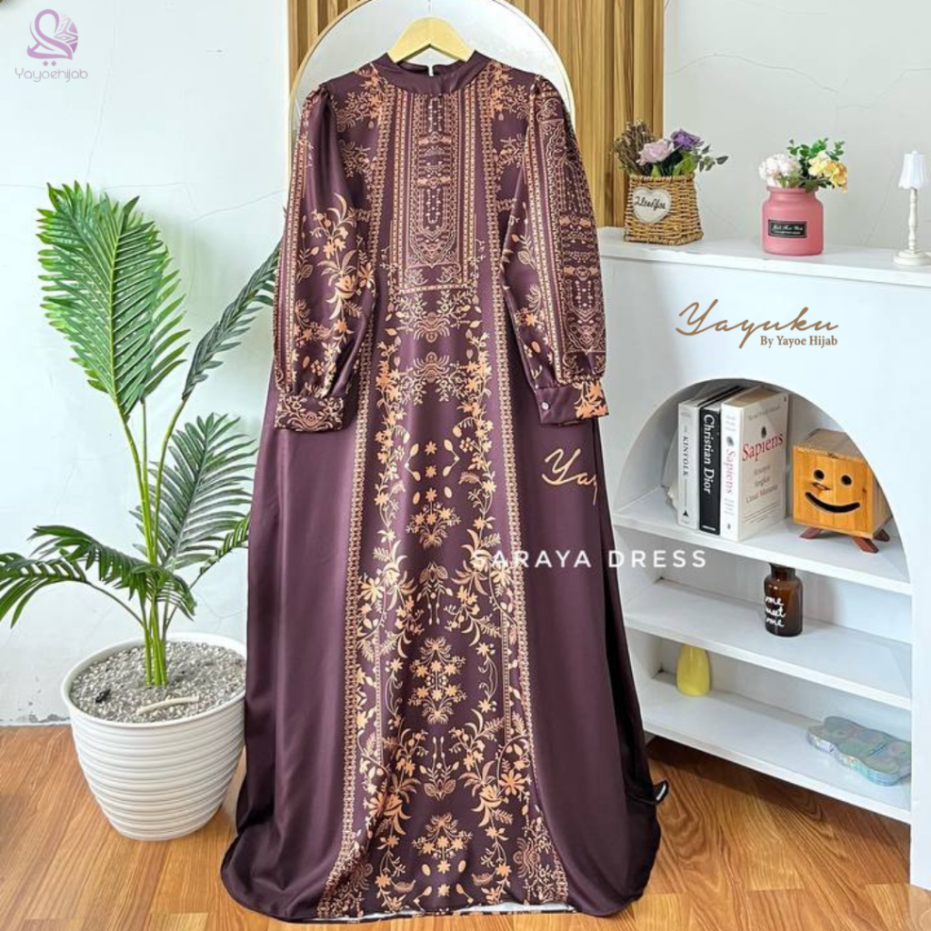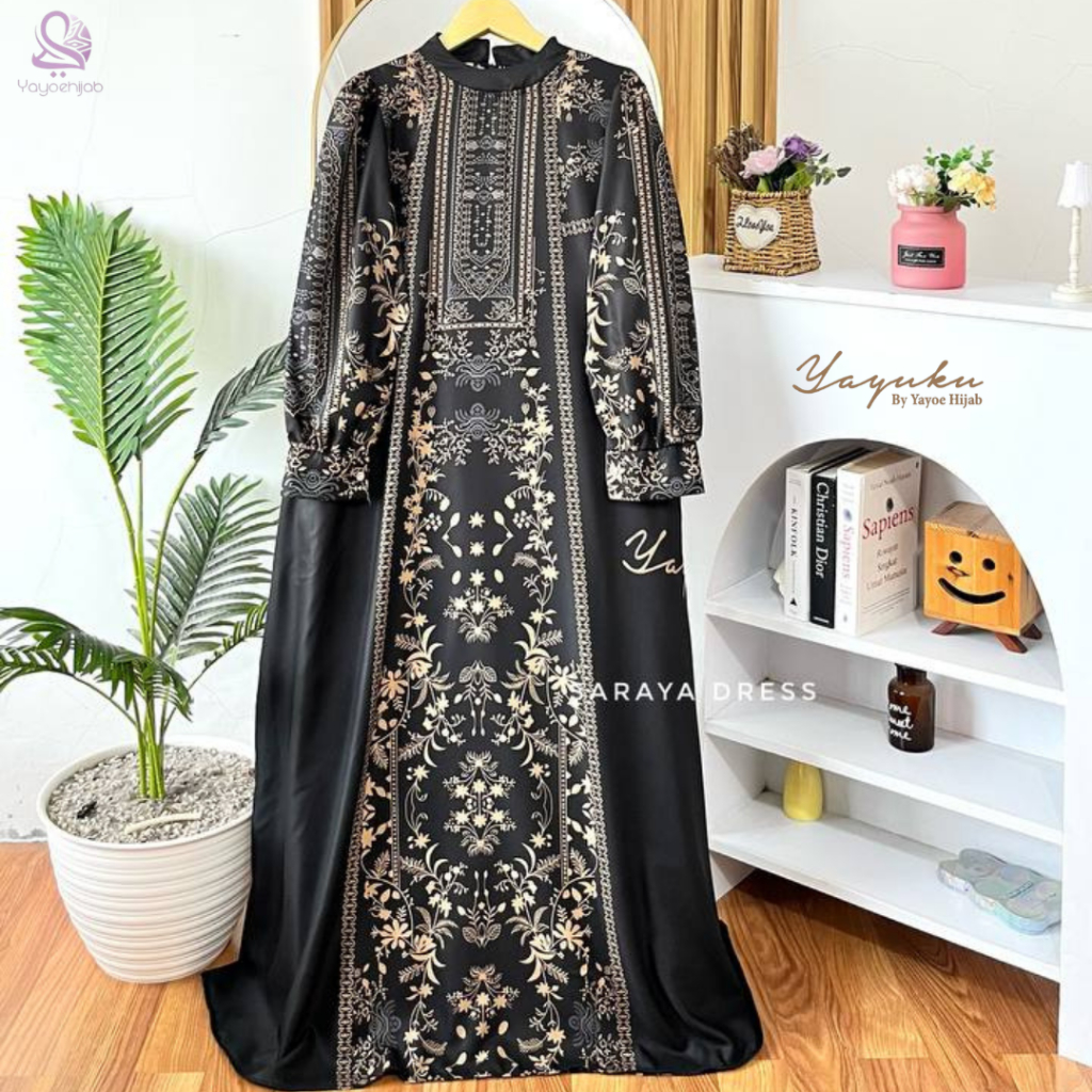 Saraya Dress Gamis Motif Wanita Muslimah Elegan Kekinian Anggun Modis Lebaran