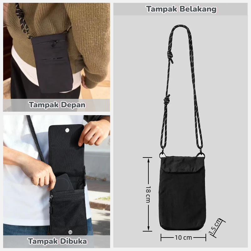 LAVIA Tas Selempang Wanita Pria Waterproof, Tas Bahu dengan Tempat Botol Minum, Multifungsi & Ringan