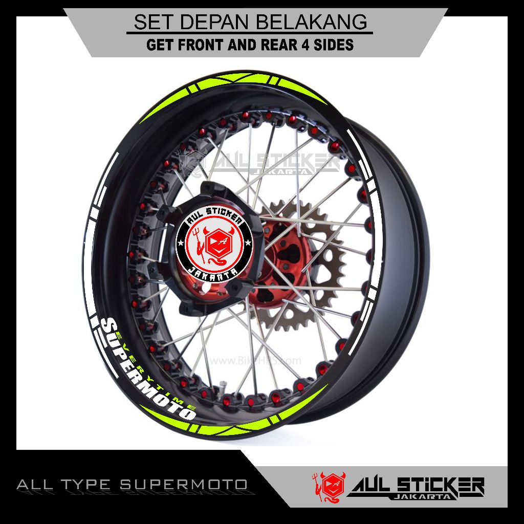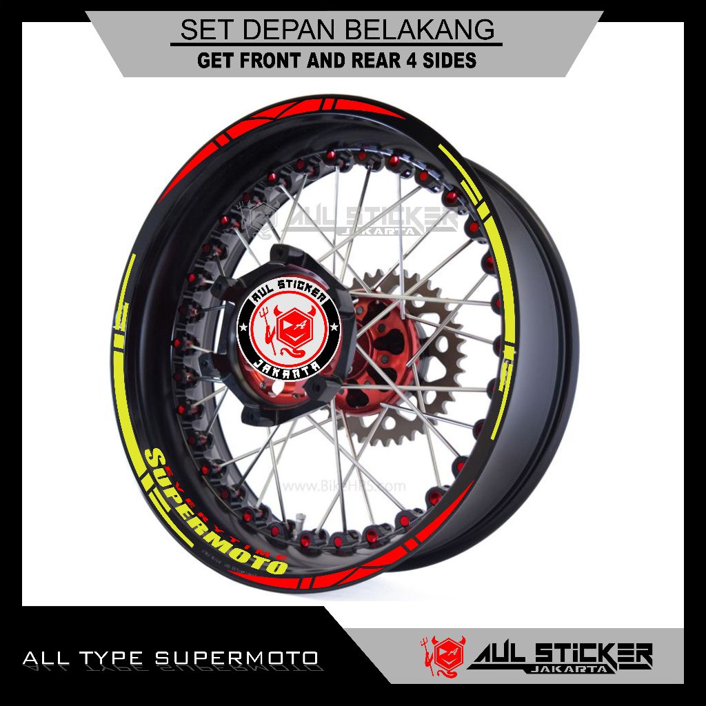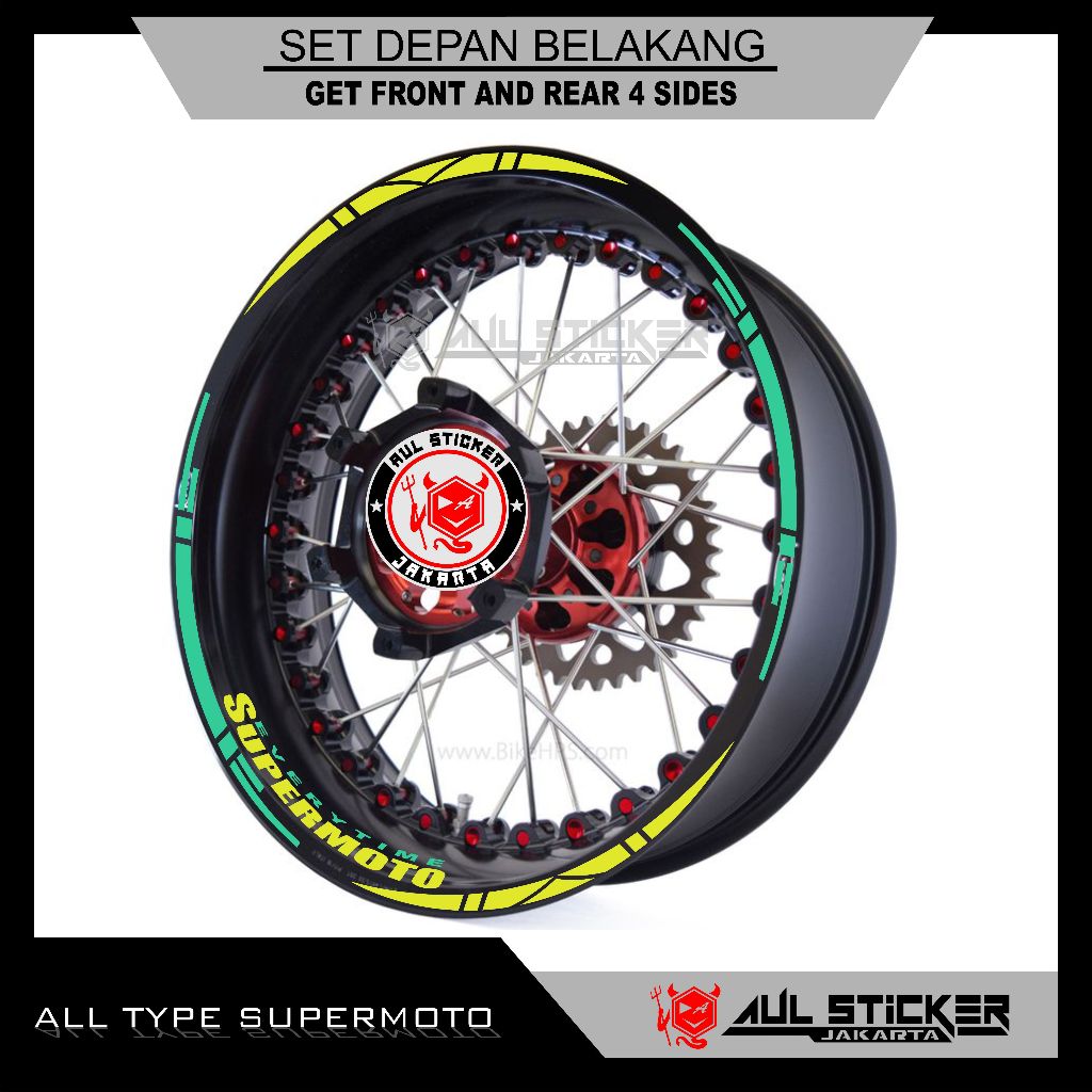 STICKER VELG ALL TYPE SUPERMOTO , CRF, KTM, D'TRACKER, DRZ, WR 155 DLL. (depan belakang)