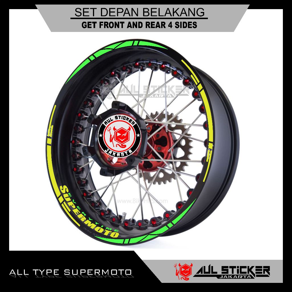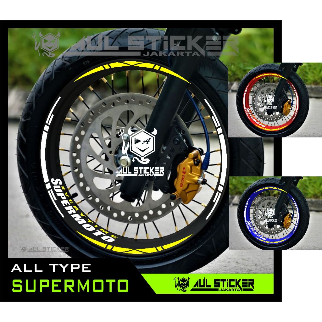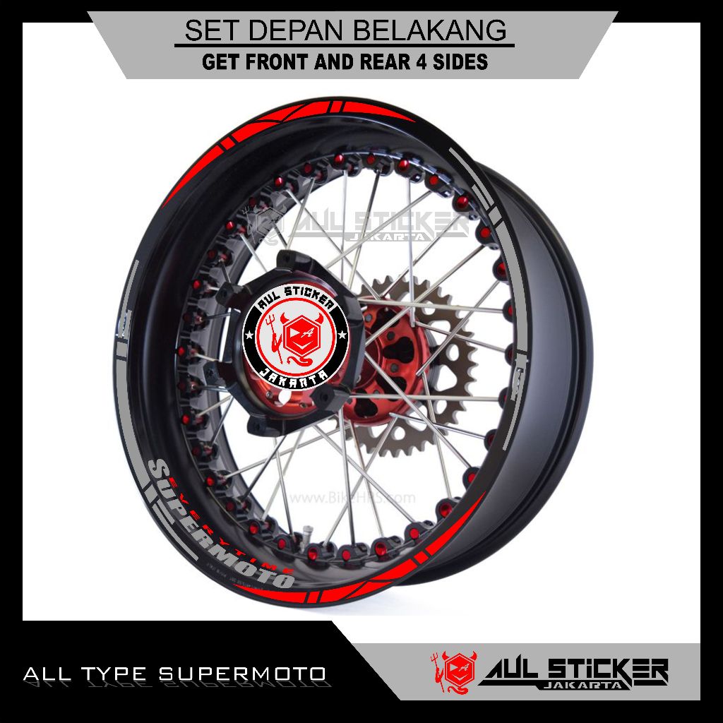 STICKER VELG ALL TYPE SUPERMOTO , CRF, KTM, D'TRACKER, DRZ, WR 155 DLL. (depan belakang)