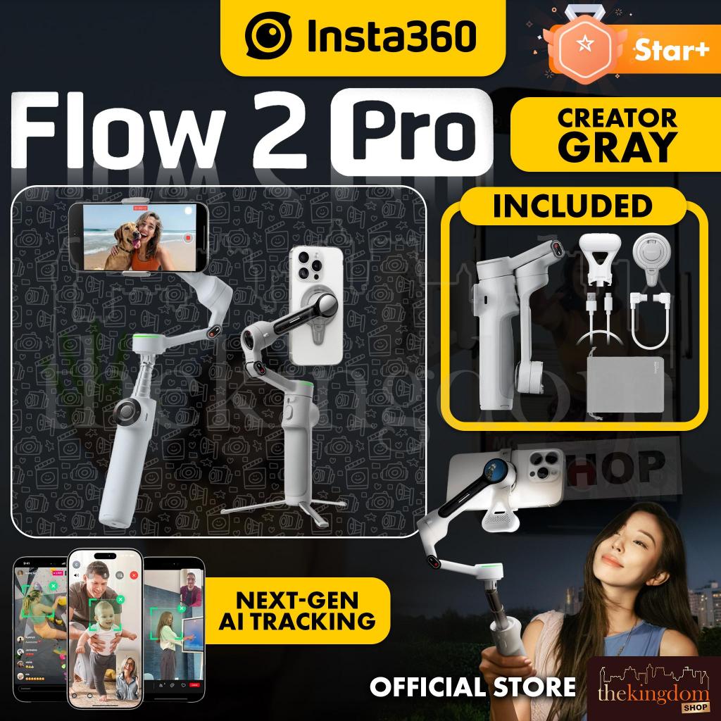 Insta360 Flow 2 Pro Gimbal Paket Creator Bundle Gray Gimbal Smarphone Stabilizer Camera Gimbal HP Abu AI Auto Tracking Cam Insta 360 Tracker Bundle Paket
