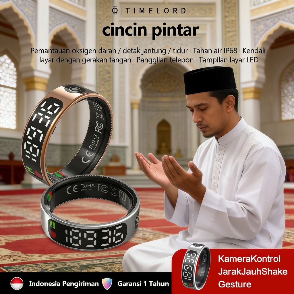 Cincin Pintar R1 Layar LED Kontrol Gerakan Penghitung Tasbih & Zikir Smart Ring Pemantau Detak Jantung &Pelacak Durasi Tidur