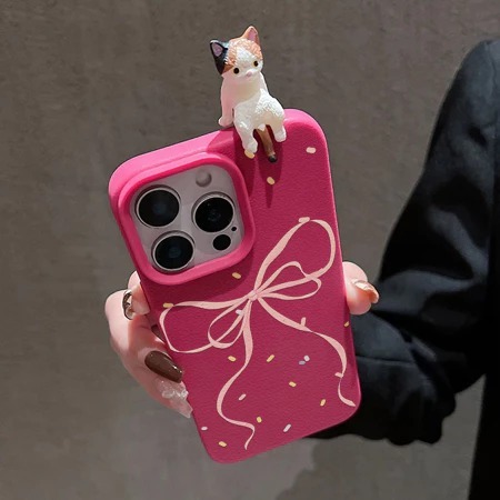 Leather Casing Ponsel Lucu Motif Pita 3D Kartun Diy Lying Cat for IPhone 11-16 Pro Max XR 12pro 13pro XS Max 14 15 16 Plus Anti-Fall Soft Back Cover AB16