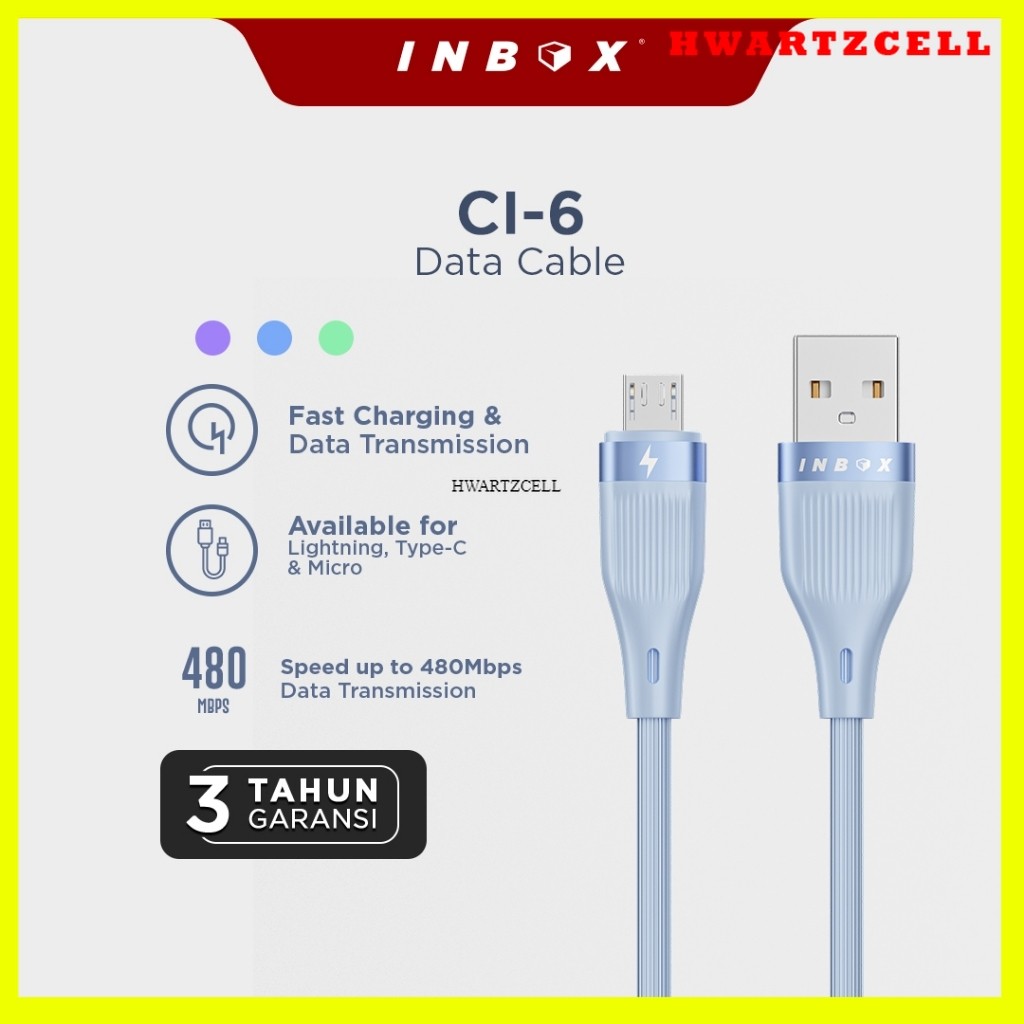 [HWARTZ] Kabel Charger Inbox CI-6 Fast Charging | Kabel Data Type C, Micro, Lightning Original GARANSI 3 TAHUN