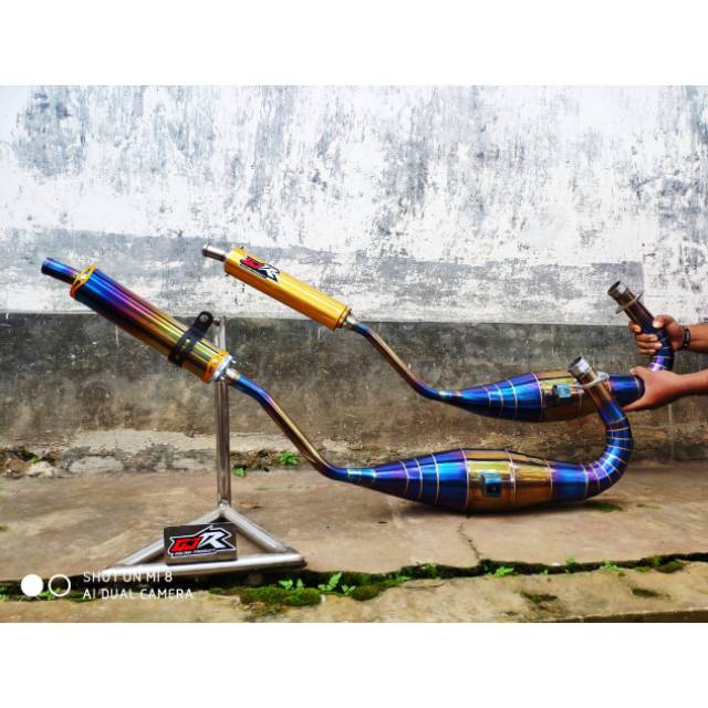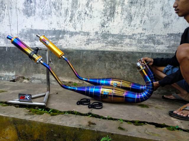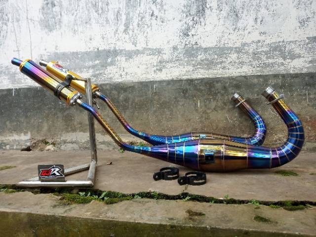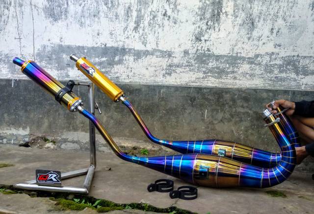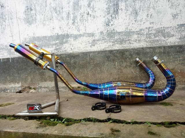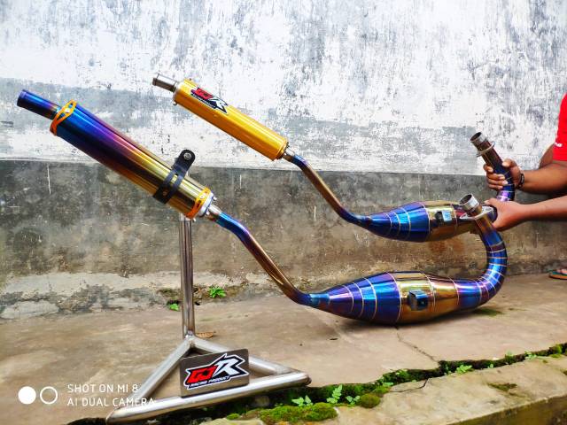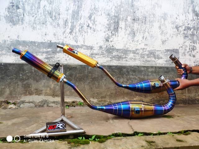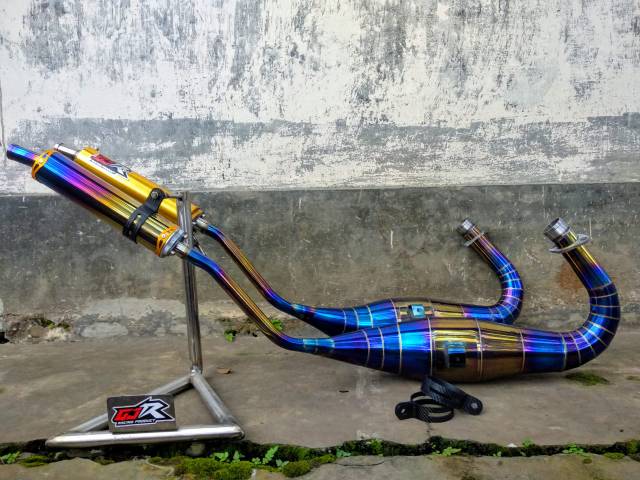 Knalpot racing ninja 2 tak versi blue original GJR Racing