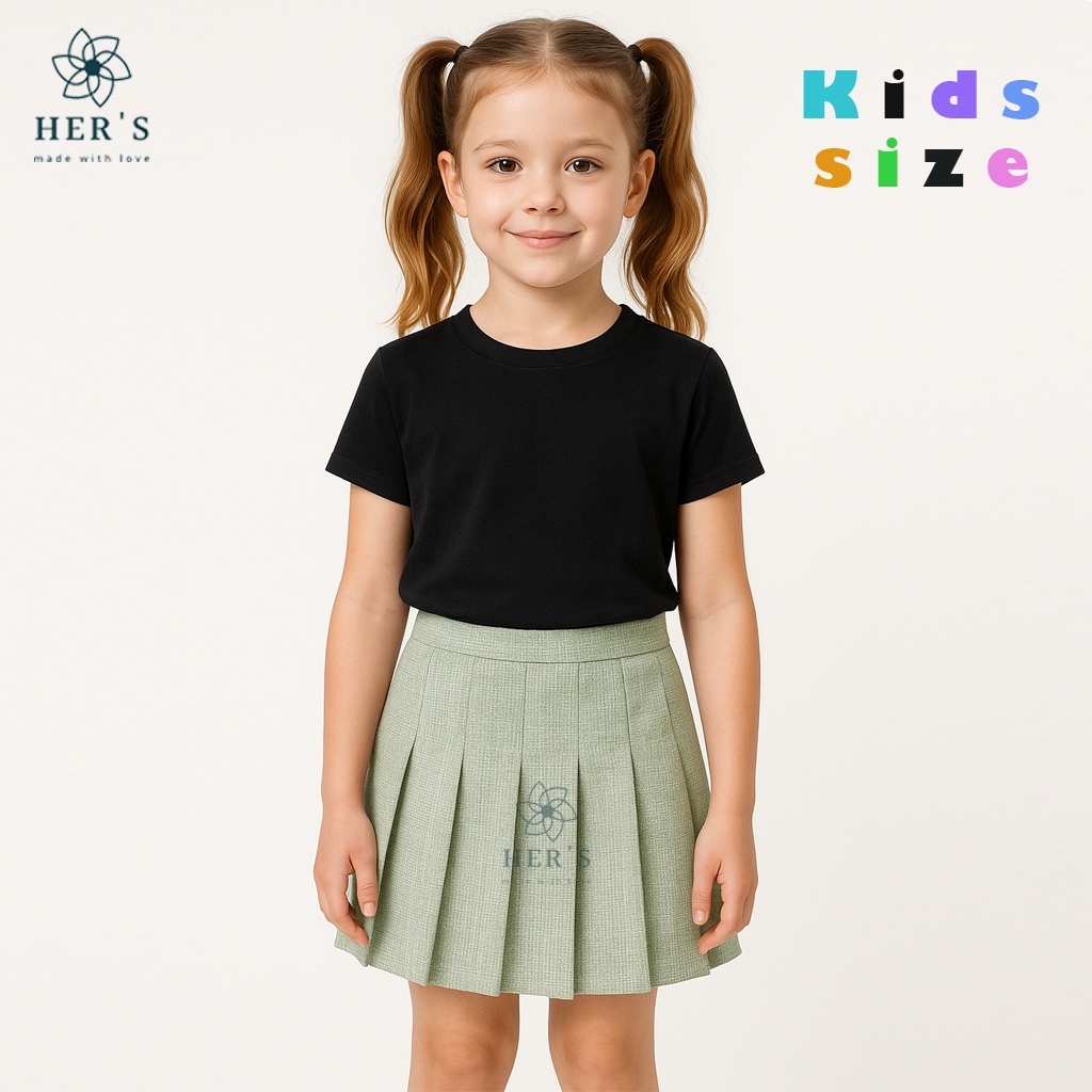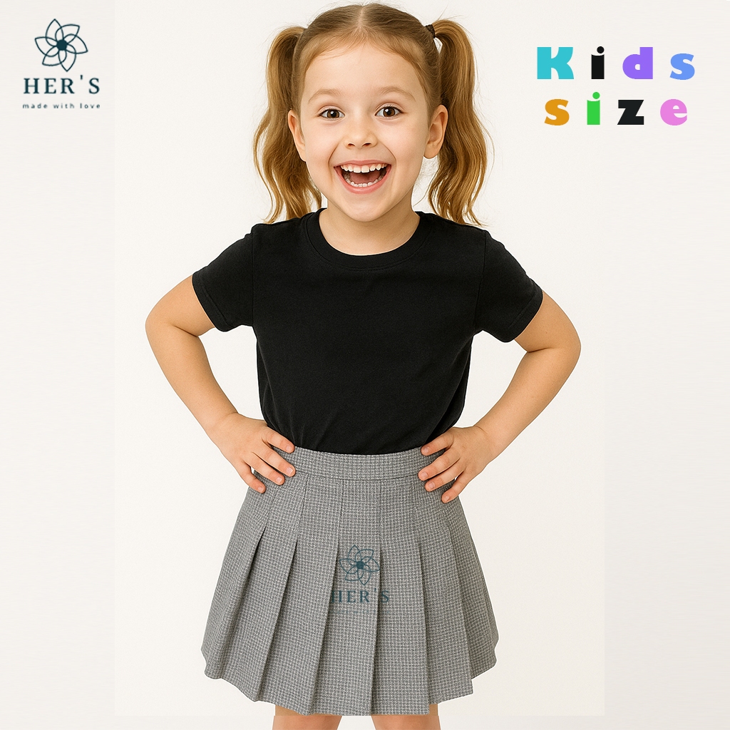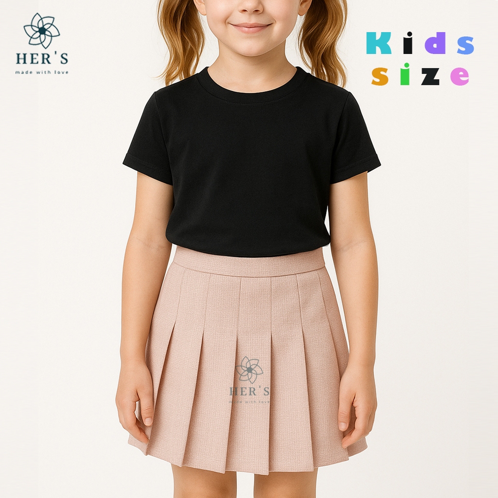Her's - Kids Collections - Lily Kids Skirt Bahan Cotton Catrice - Texture Warna Rok Anak Perempuan - Rok Mini Anak Mini Pleated Girls School Uniform Skirts for Girls Kids Tennis Skirt Girl's Pleated