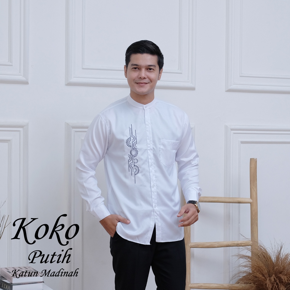 Baju Koko katun Dewasa Warna lengan Panjang Bordir | baju koko pria bordir | Baju Muslim Pria
