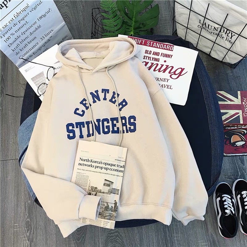 Sweater Hoodie Oversize Center Stringers Baju Vintage Wanita Pria Unisex Keren Stylish Kekinian Outfit Y2K Style Aesthetic Chikoisme NR