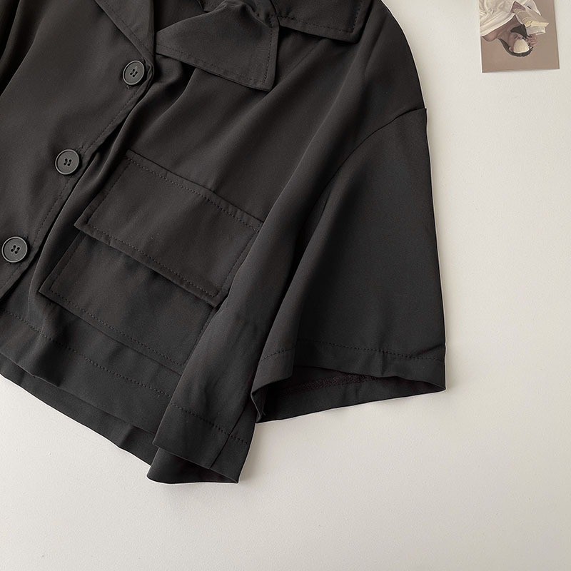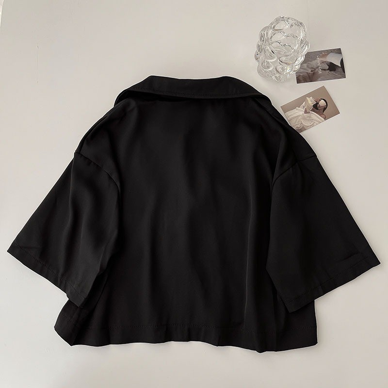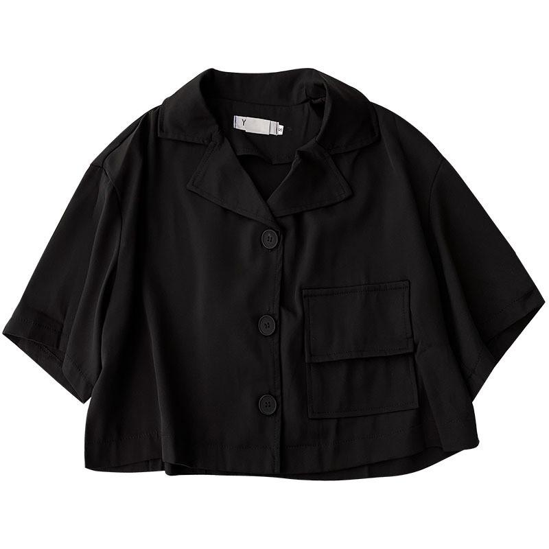 Laluna Kemeja Shirt Crop Saku baju atasan wanita terbaru hitam korea Chikoisme NR