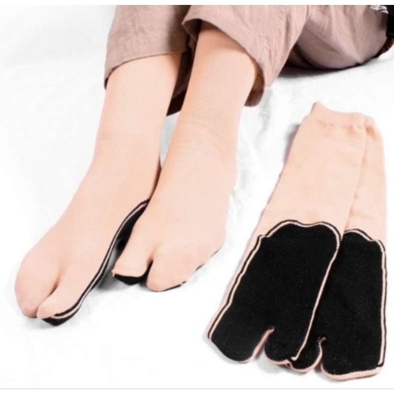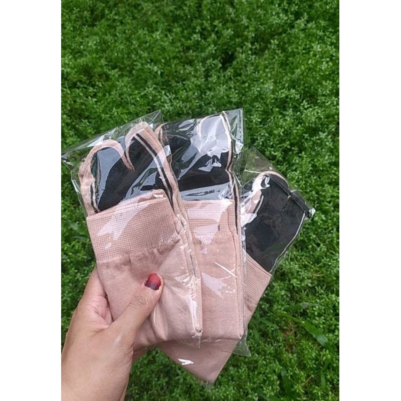 3 pasang kaos kaki jempol muslimah coklat telapak hitam coklat polos dan hitam polos cream panjang sebetis dewasa