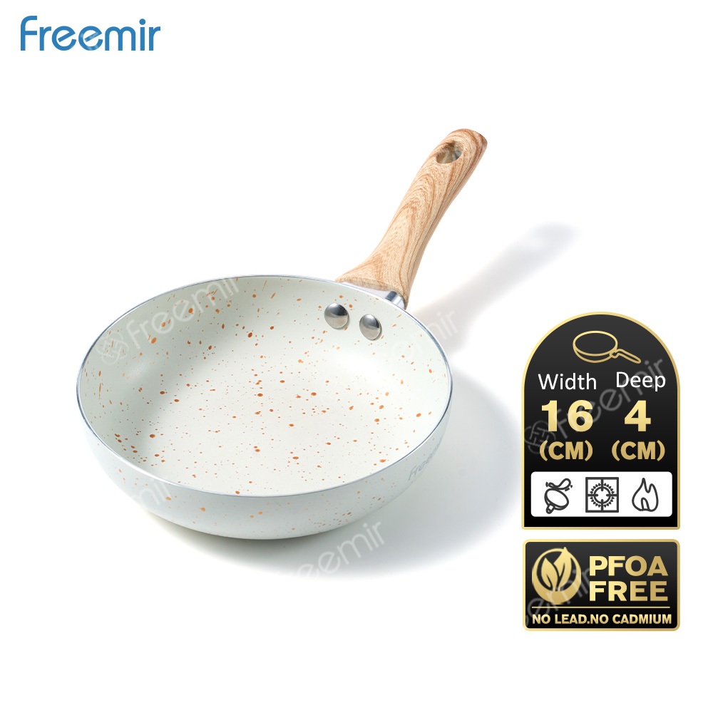 Special freemir Frypan Granite Anti Lengket 16/20/24cm Wajan Penggorengan Serbaguna Gagang Kayu