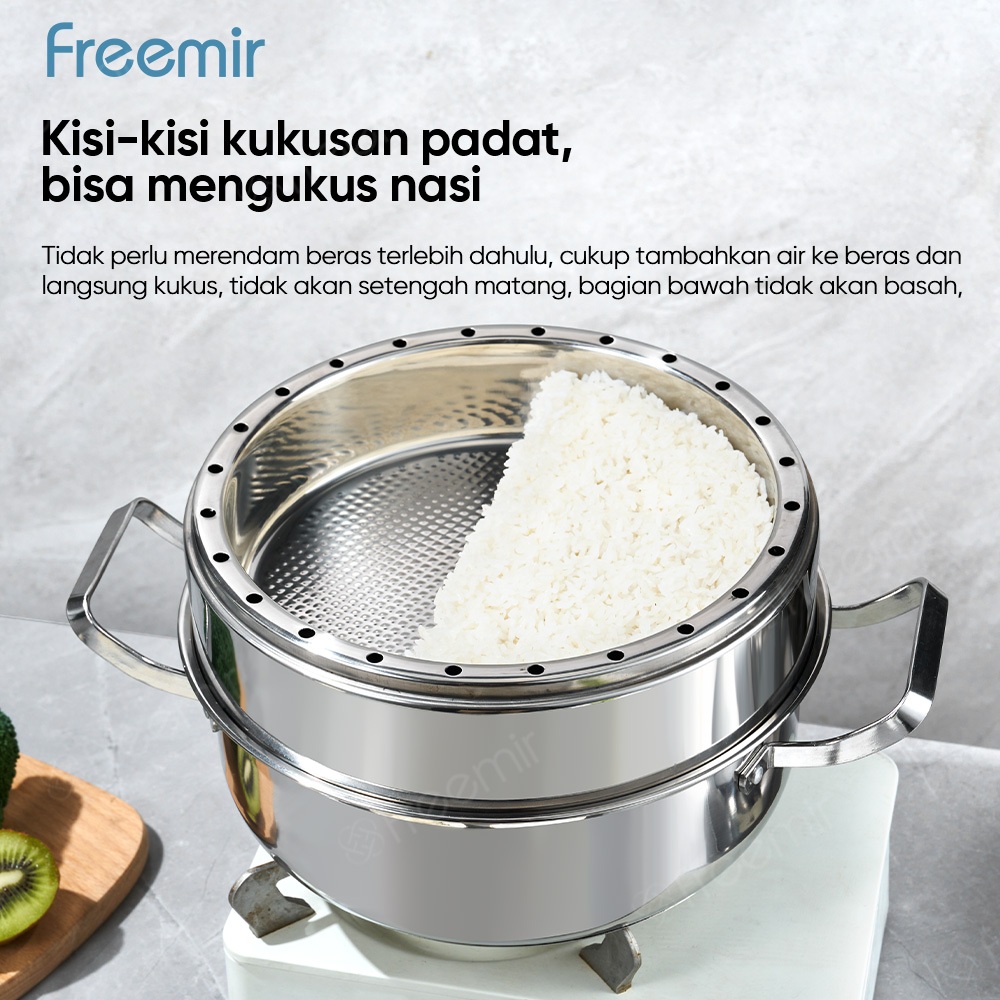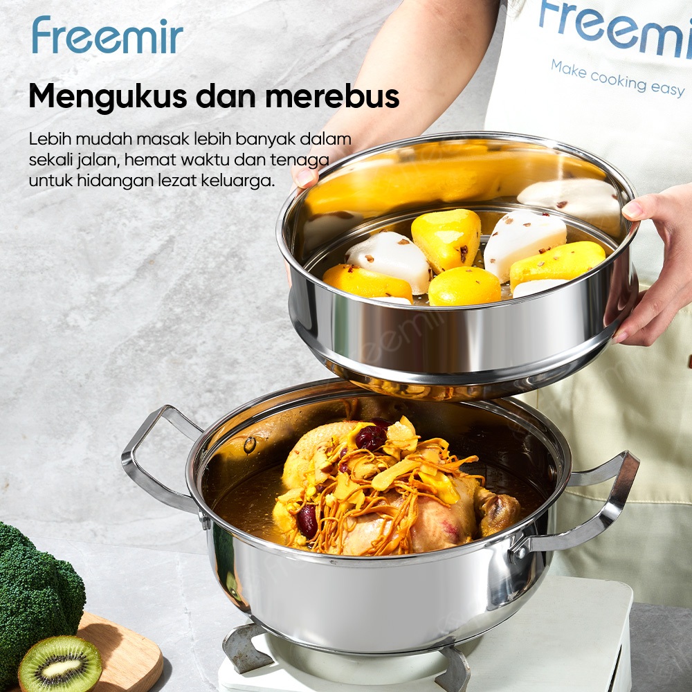 Offical freemir Panci Kukus Stainless 26cm Kapasitas besar 2 lapis, cocok untuk mengukus nasi dan ikan sebagai makanan pendamping ASI anak
