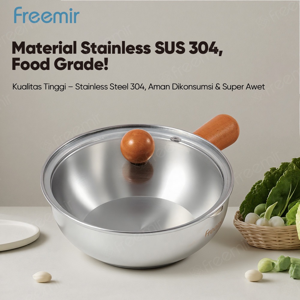 Offical freemir Panci susu mini Kelas makanan baja tahan karat 304 Mudah dibersihkan wajan anti lengket Masak mie, kopi, dan susu Satu pot untuk berbagai kegunaan Panci dan wajan dapur