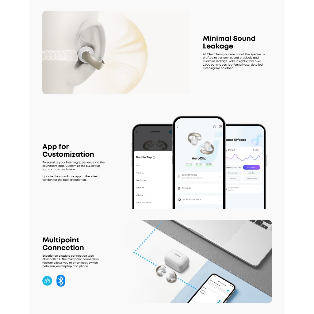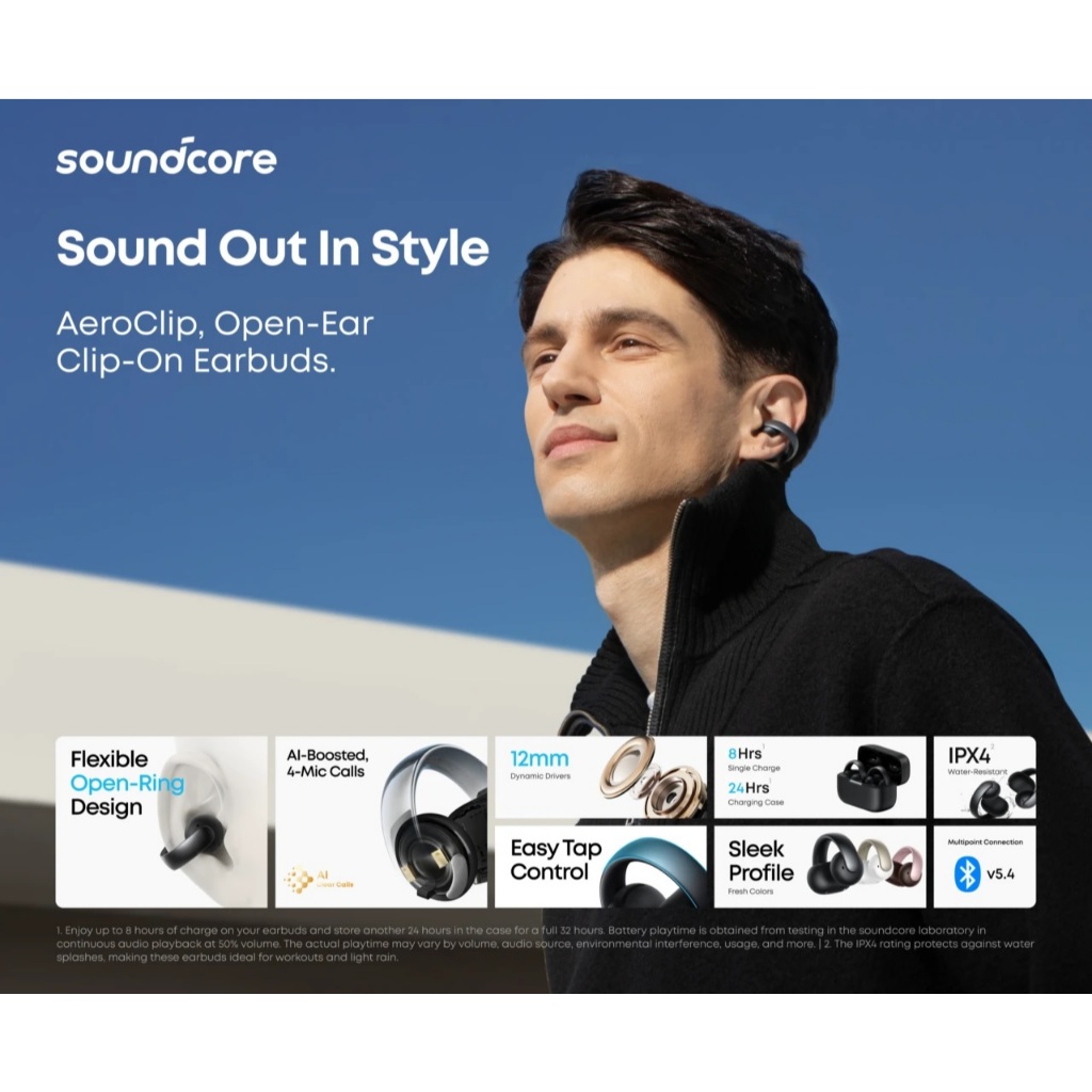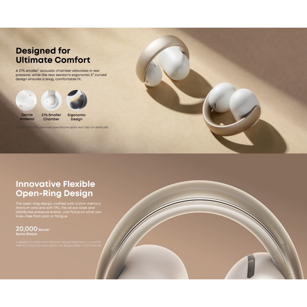 ANKER Soundcore AeroClip - Open-Ear Clip-On Earbuds with Adaptive Comfort - A3388