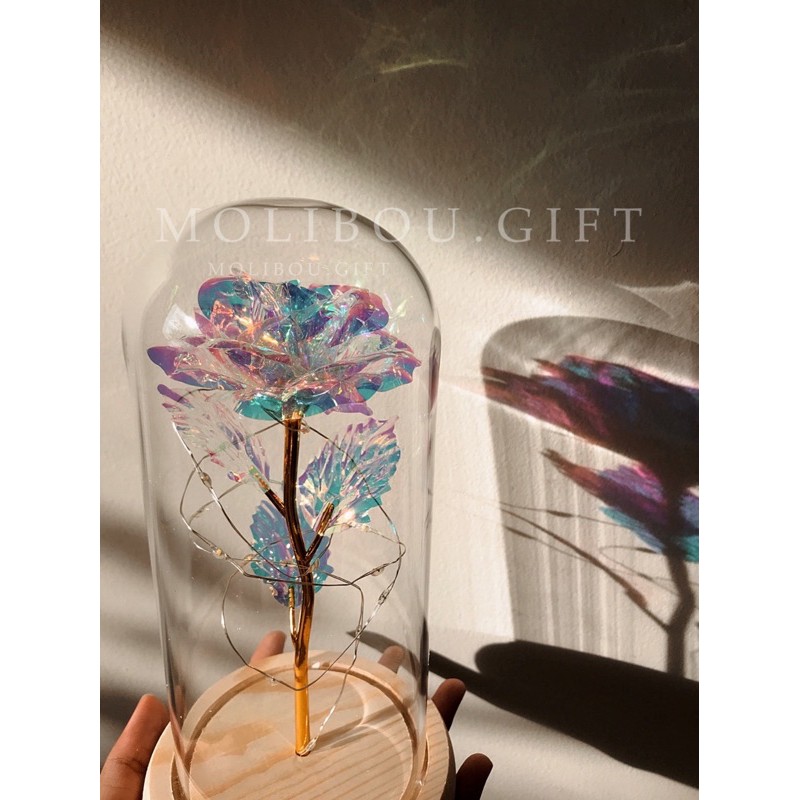 GLASS DOME Lampu tidur bunga holo emas hadiah kado romantis valentine wisuda ulang tahun led