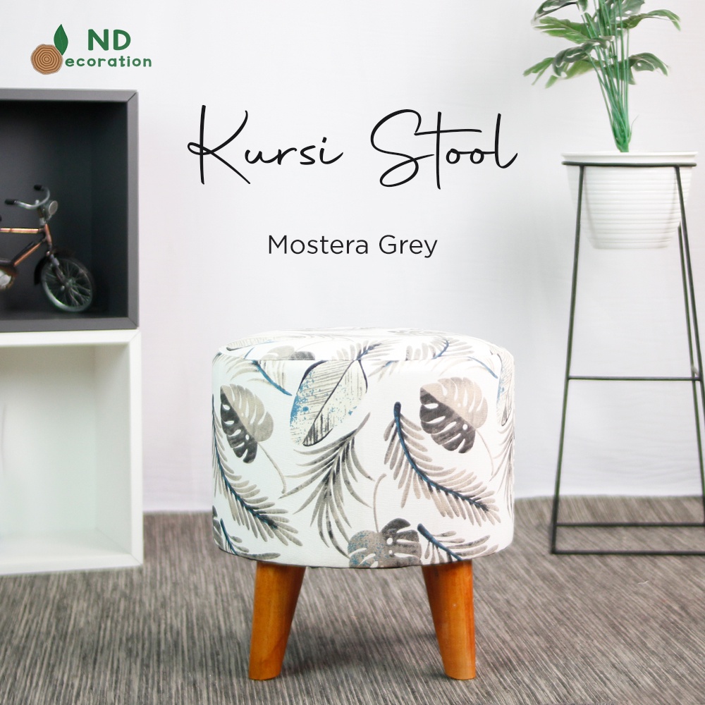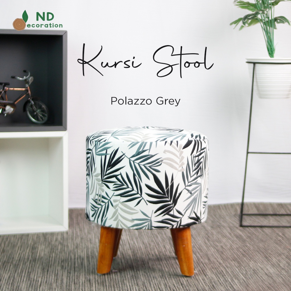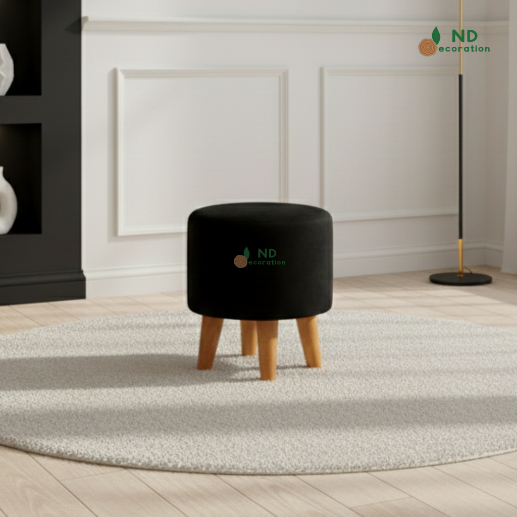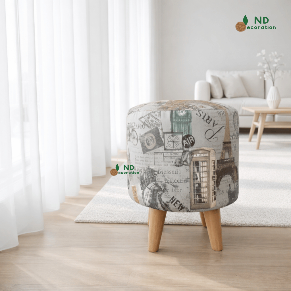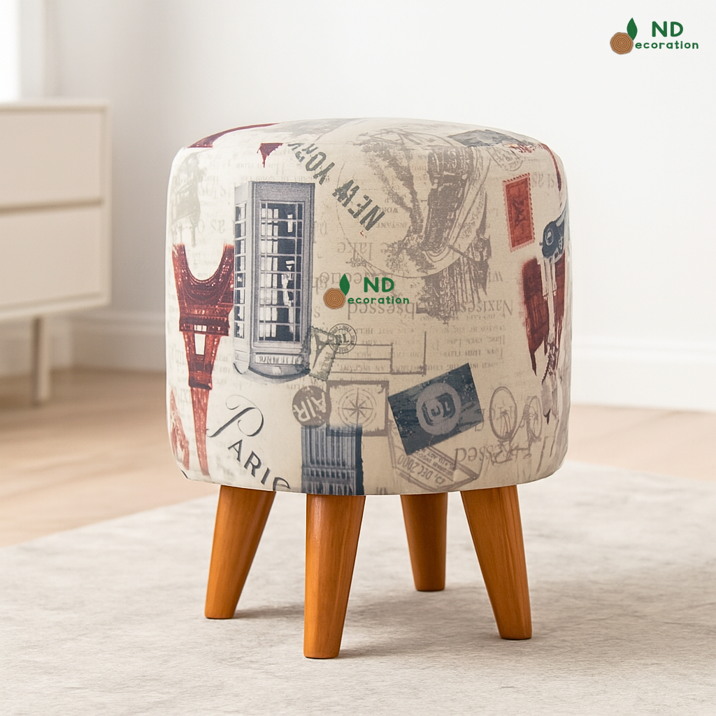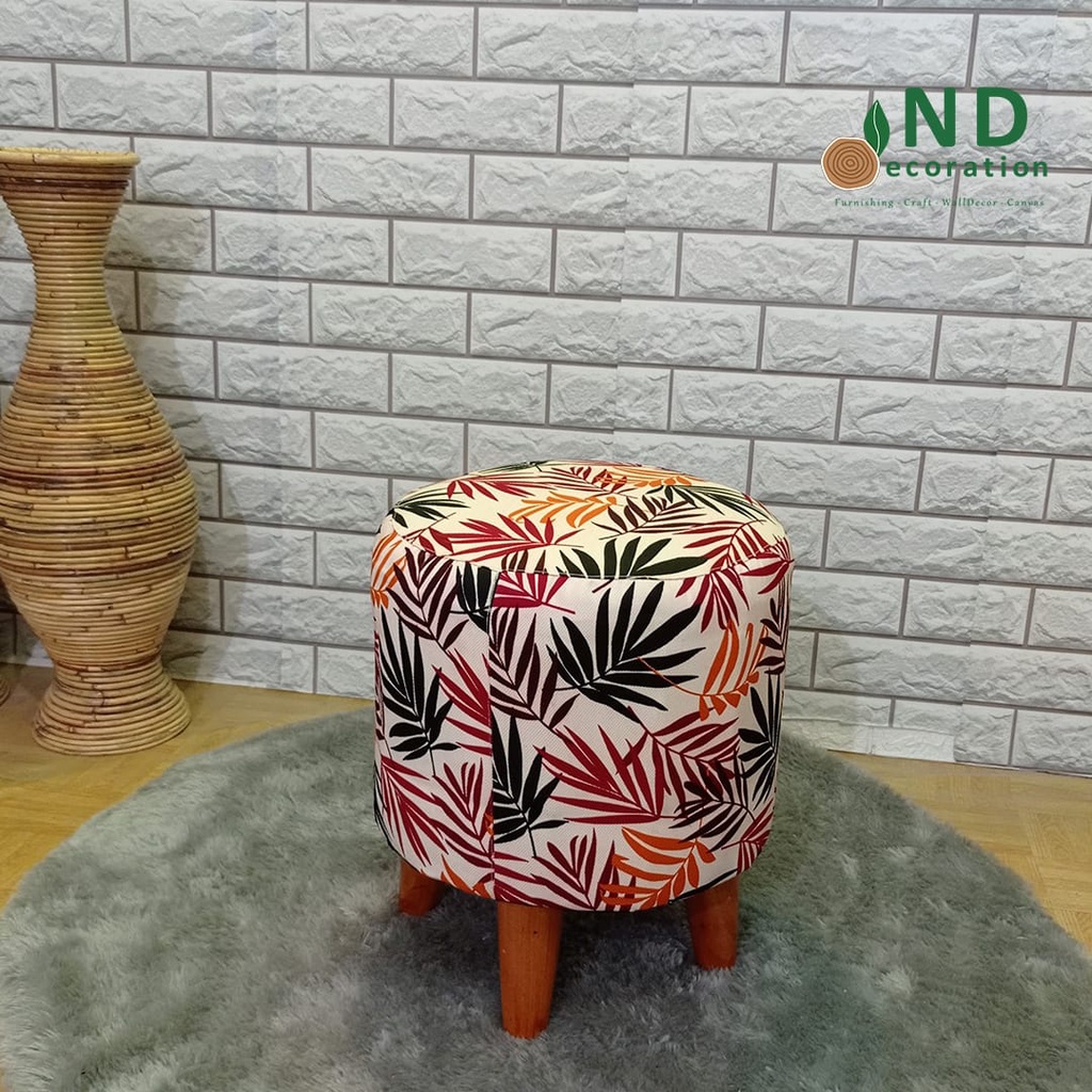 ND Decoration - Kursi Stool Bulat Beludru Bangku Puff Canvas Motif
