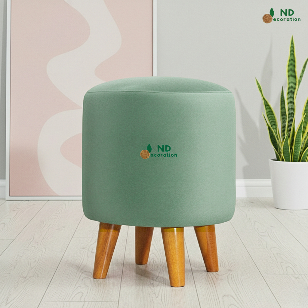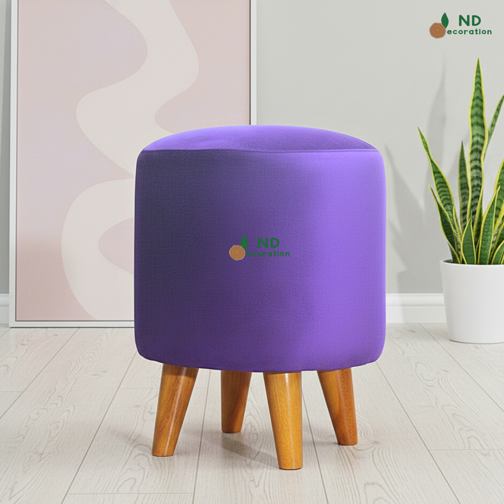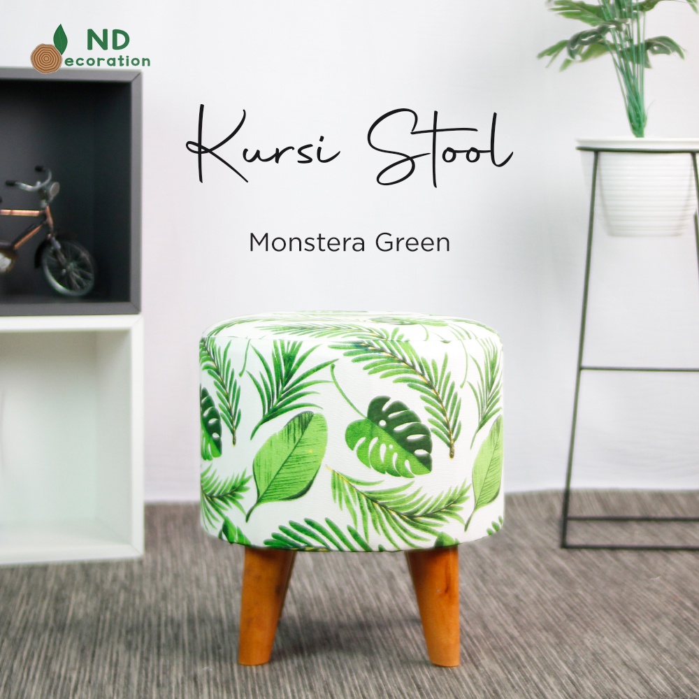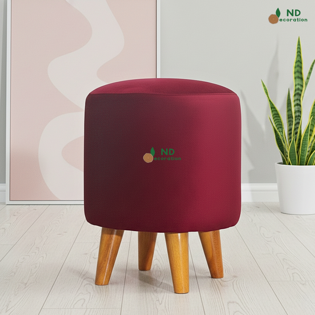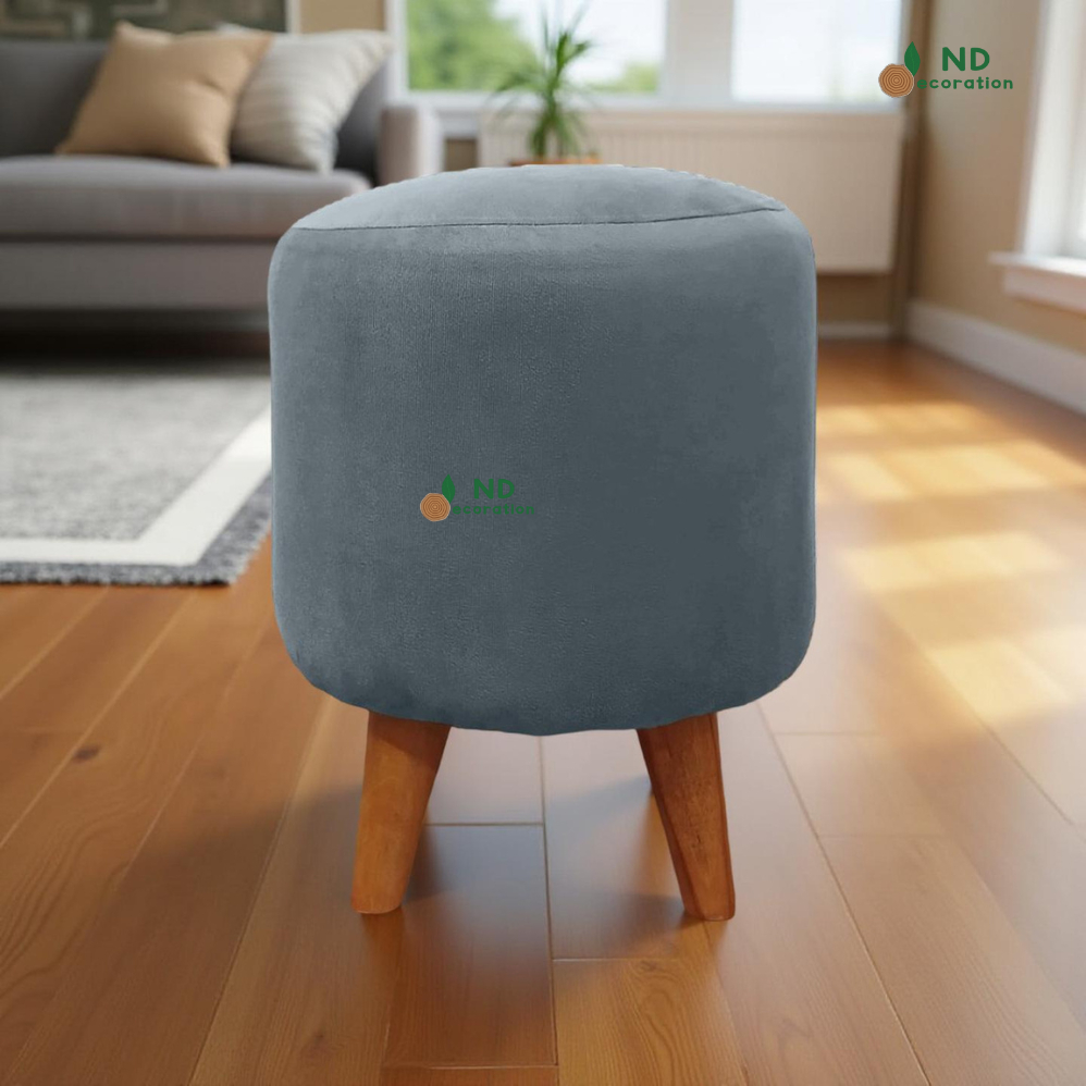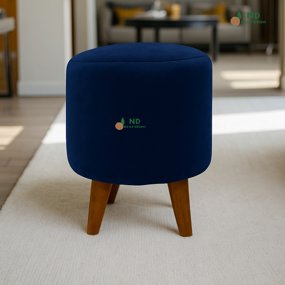 ND Decoration - Kursi Stool Bulat Beludru Bangku Puff Canvas Motif
