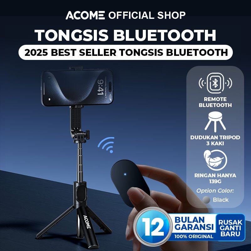 ACOME Tongsis Tripod Selfie Bluetooth dengan Remote Control Selfie Stick Portable Flexible Tripod HP SS07A/SS18A/PG01