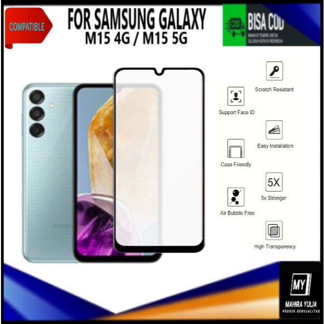 Tempered Glass Samsung Galaxy M15 5G M15 4G Full Cover Anti Gores Kaca Full Layar Screen Protector Pelindung Layar Hp Kaca Tebal Anti Pecah