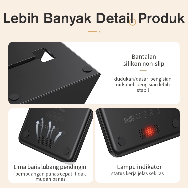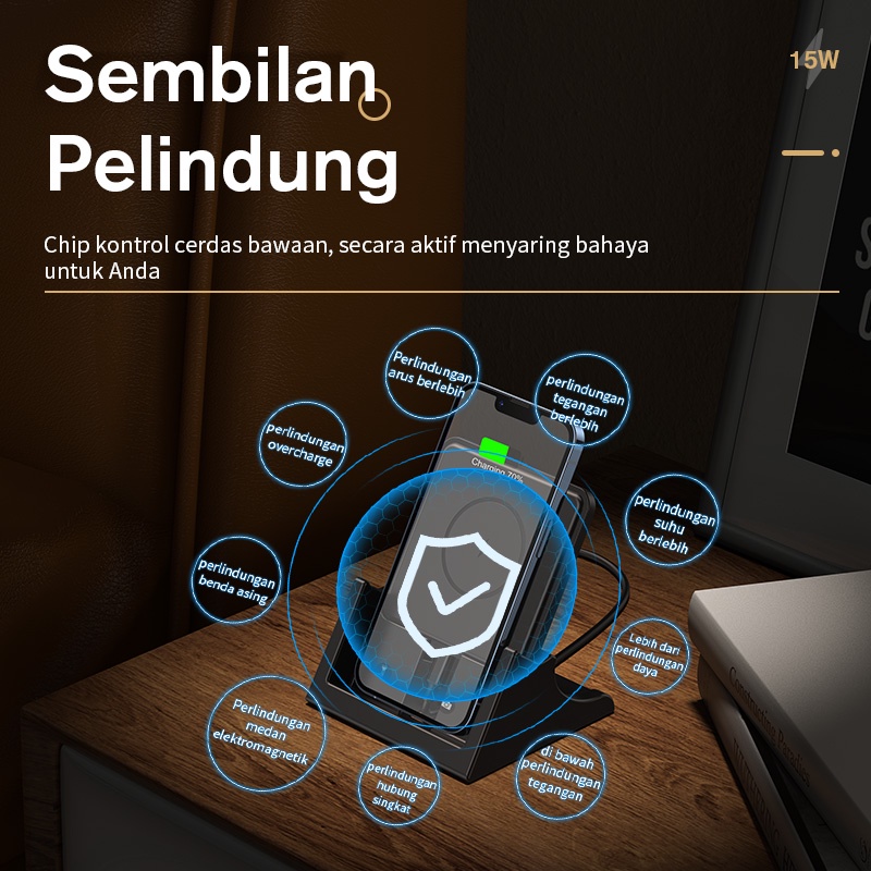 KIVEE Charger iPhone Wireless Fast charging 15W KV-WS25 Black Multifungsi For Android & IOS Original