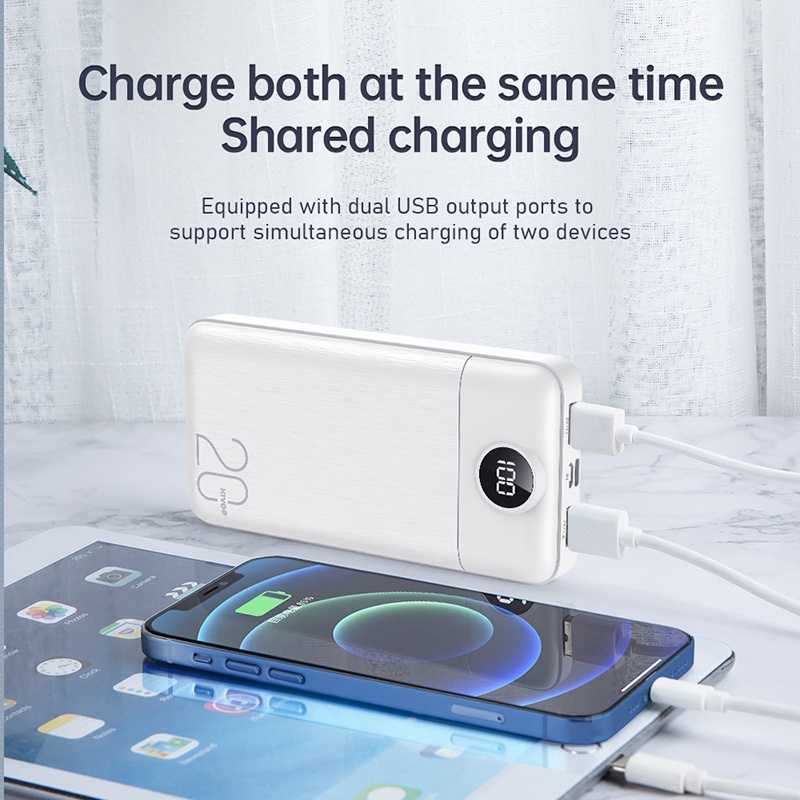 (HOT)KIVEE Powerbank 20000mAh Fast Charging KV-PT126 Black Max Real Capacity Tipis Portabel Original