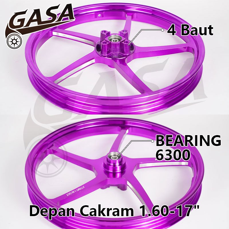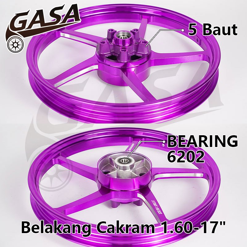 VELG BIKINGBOY PALANG 5 CNC RING 17 Untuk Jupiter MX King, Vixion New/Nvl/Nva, R15 Old V1 V2, Exciter 150 (LC150), Y15/Y15ZR Velg Racing Ukuran Set d/b 160*17 PNP TANPA MODIF Warna Ungu / Purple