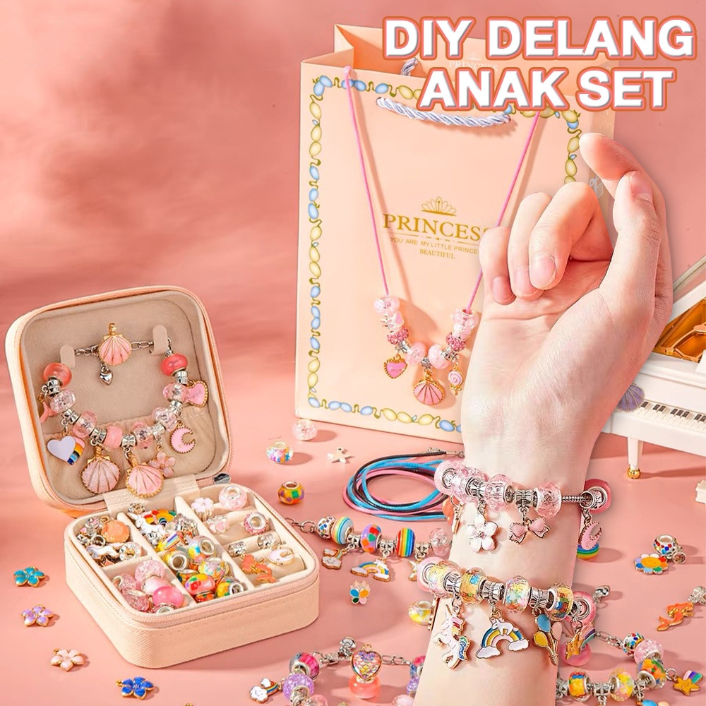 Anak Perempuan Hadiah DIY Gelang Pandora Kit Pembuat 66Pcs/set Gelang Anak Gelang Mainan Perempuan