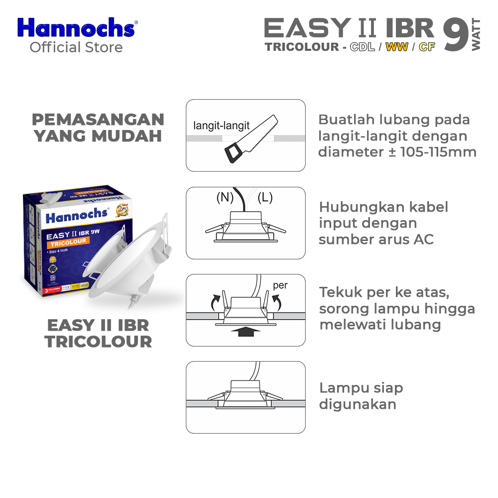 Hannochs Lampu Downlight LED EASY II 9W IBR Tricolour INBOW