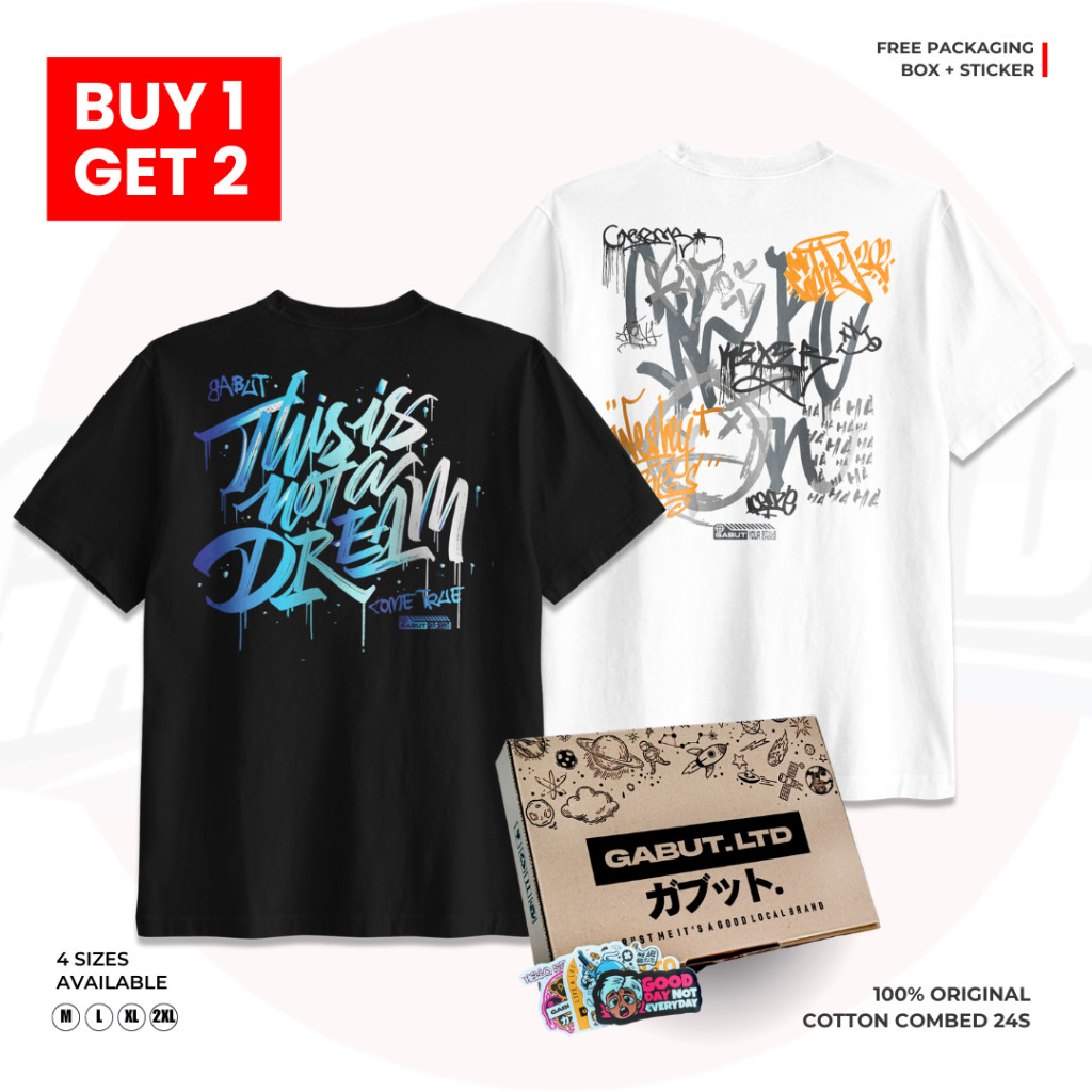 Paket Bundling 2pcs Kaos Distro Remaja Dewasa Pria dan Wanita Motif Not Dream Hitam Dan Gabut Sleep Hitam Cotton Combed 24s DTF 100% Produk Original