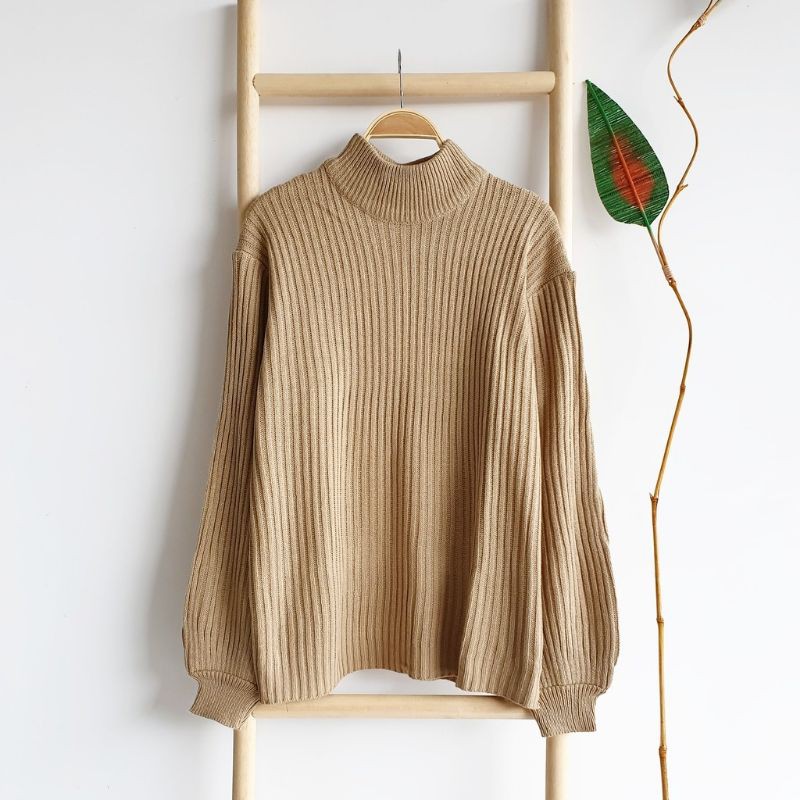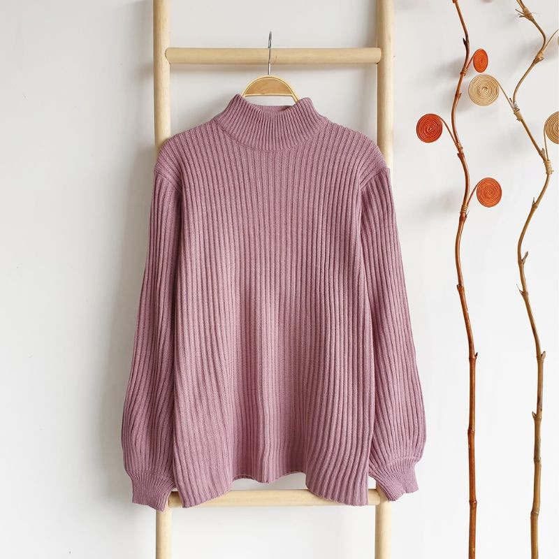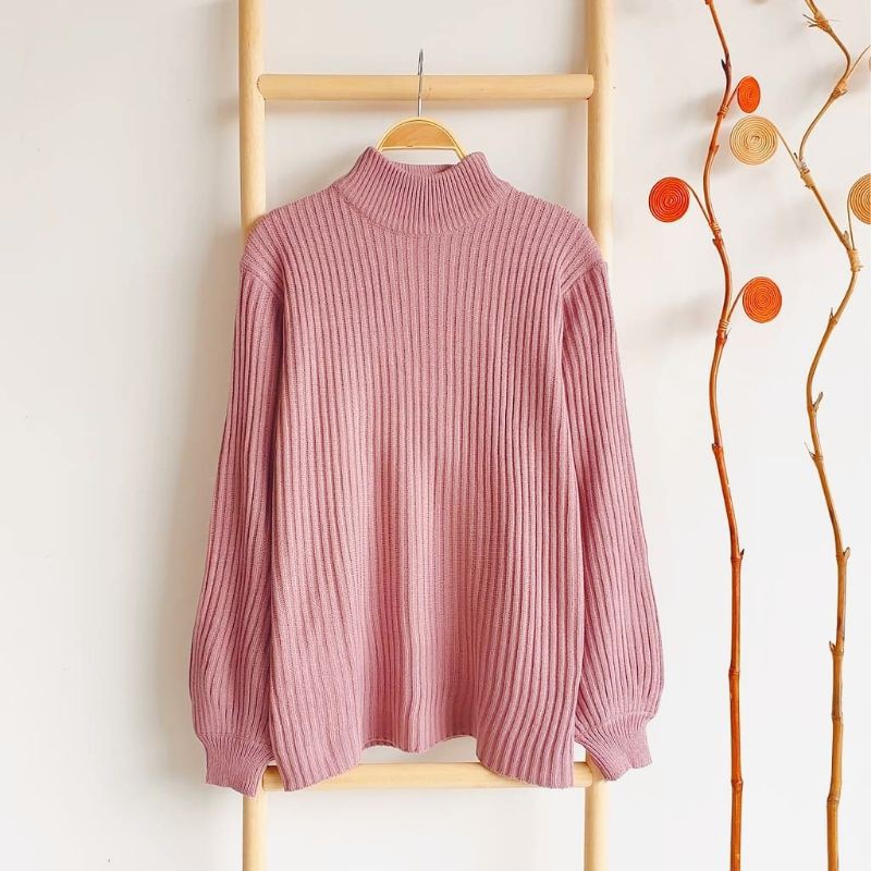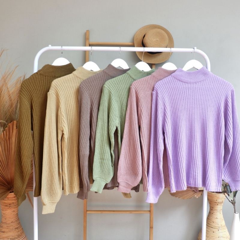 [ BISA COD ] SWEATER KNIT NAYRA / ATASAN TURTLE WANITA RAJUT LENGAN BALON WANITA KERAH TINGGI / BAHAN TEBAL / OUTFIT KEKINIAN