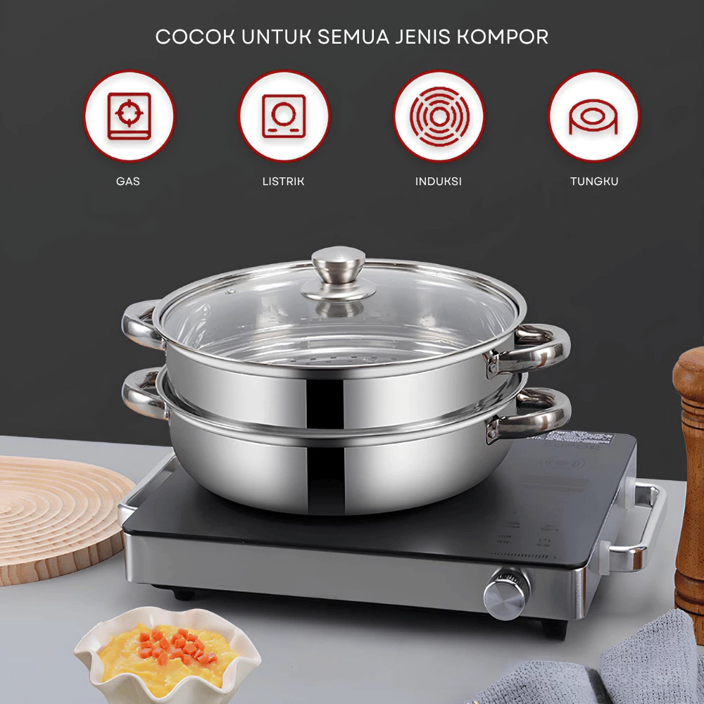 Kayu Home Panci Kukus Set Stainless Steel Panci Sup Steamer Ikan Bakpao Siomay 2 Susun 28Cm Tebal